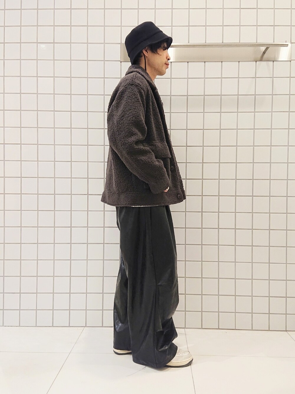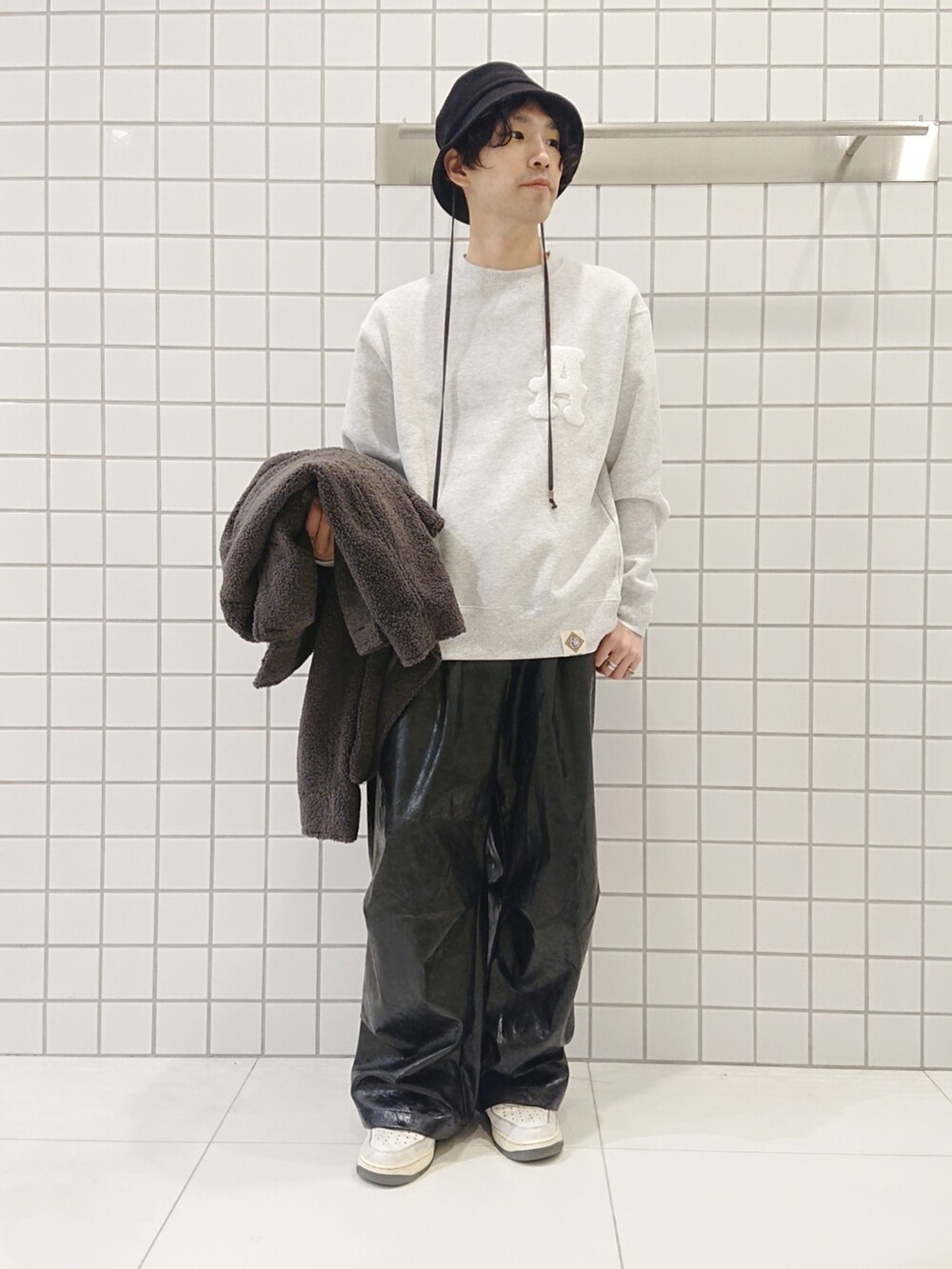 カジュアルの定番ですが、インナーのワンポイントやボトムのシルエットなど屋内でもオシャレに見せていただけます〇