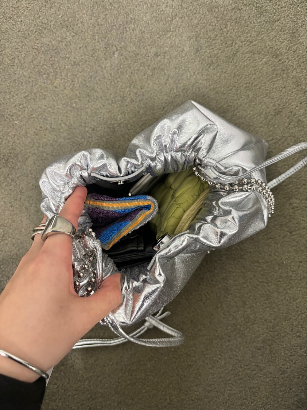 ボディと同色のショルダー、斜め掛けで持てるぐらいの長さの紐も入っているので