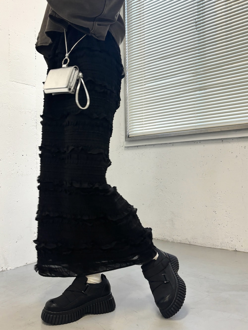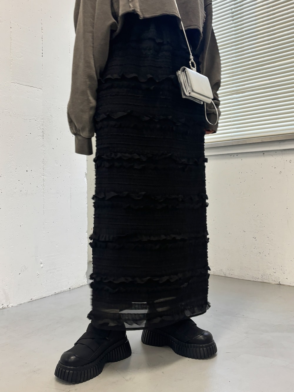 フリフリの着やせスカートと合わせて大人ガーリーコーデに◎