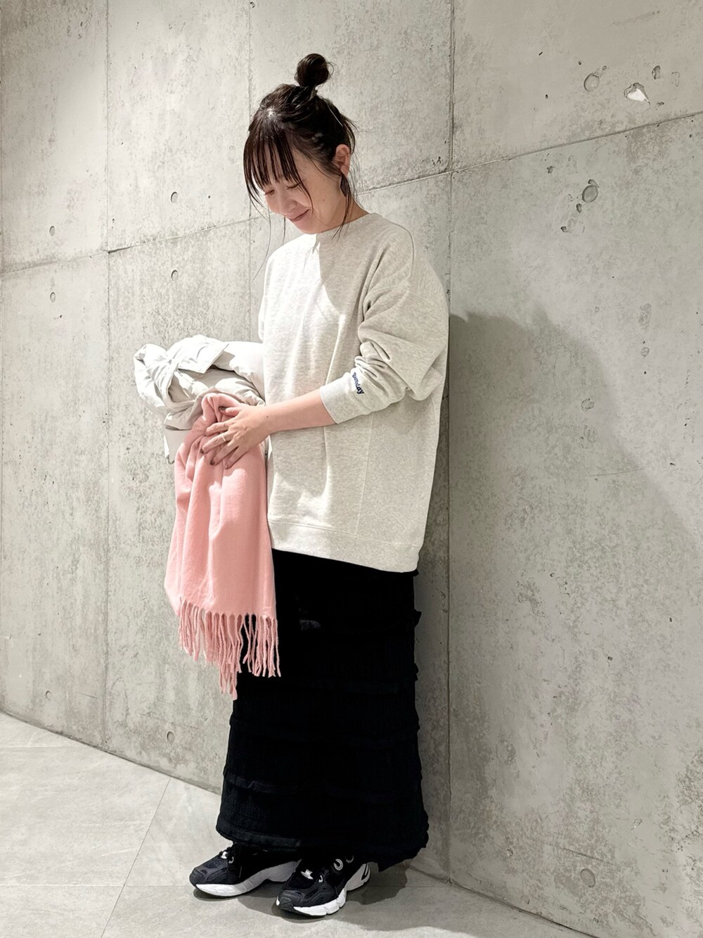 今回は、スウェットにニットスカートを合わせた、大人カジュアルコーディネートです。