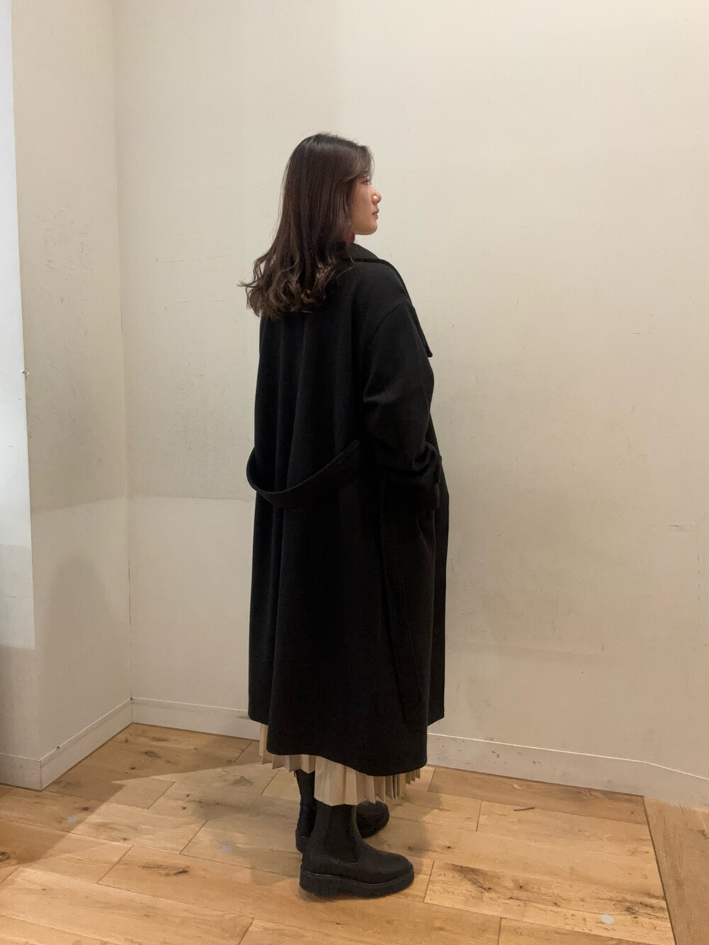 ロングコートを主役に赤ニット×ゴールドカラーのスカートを合わせ、クリスマスにピッタリな大人コーデにしてみました🎄✨️