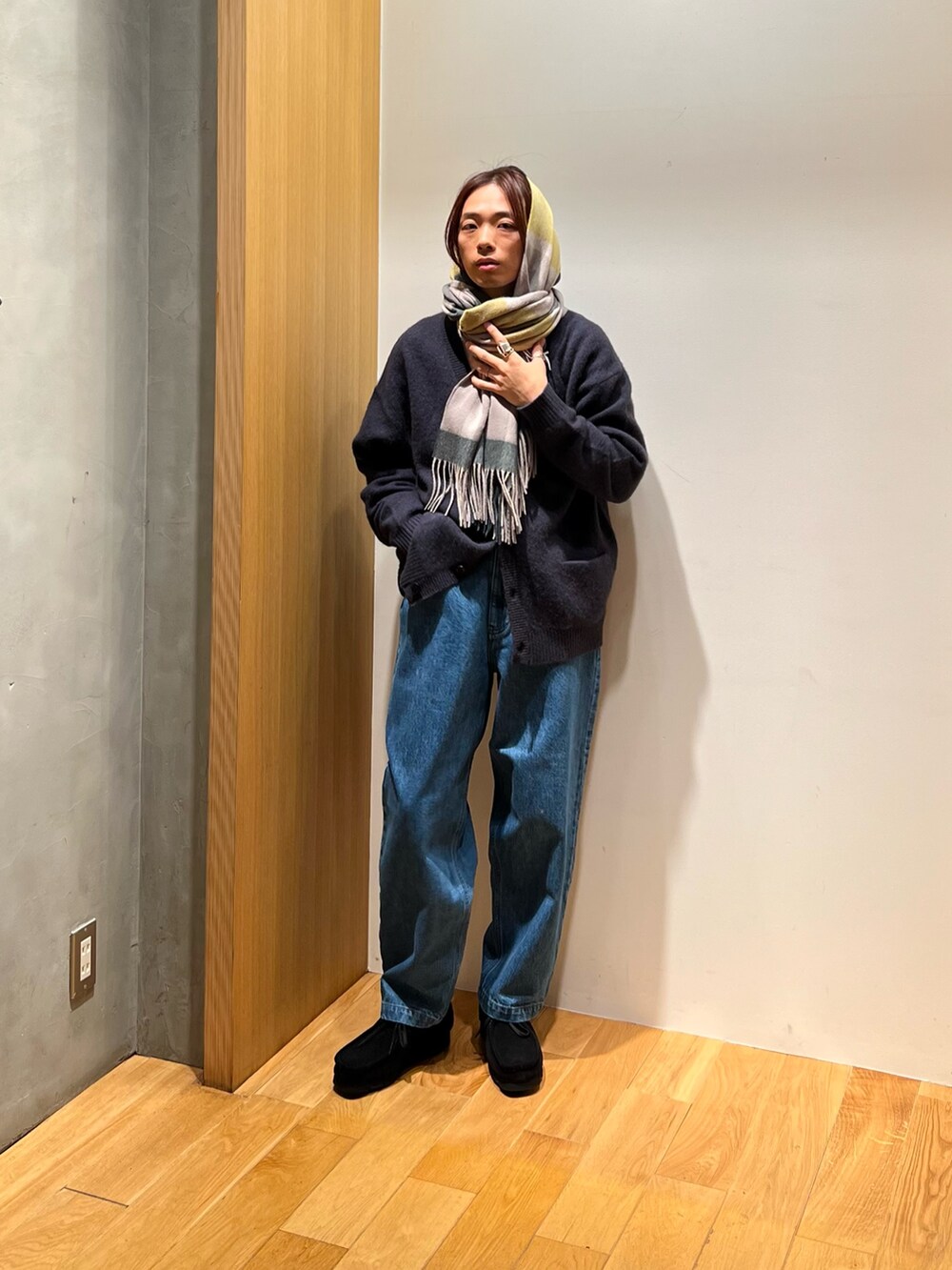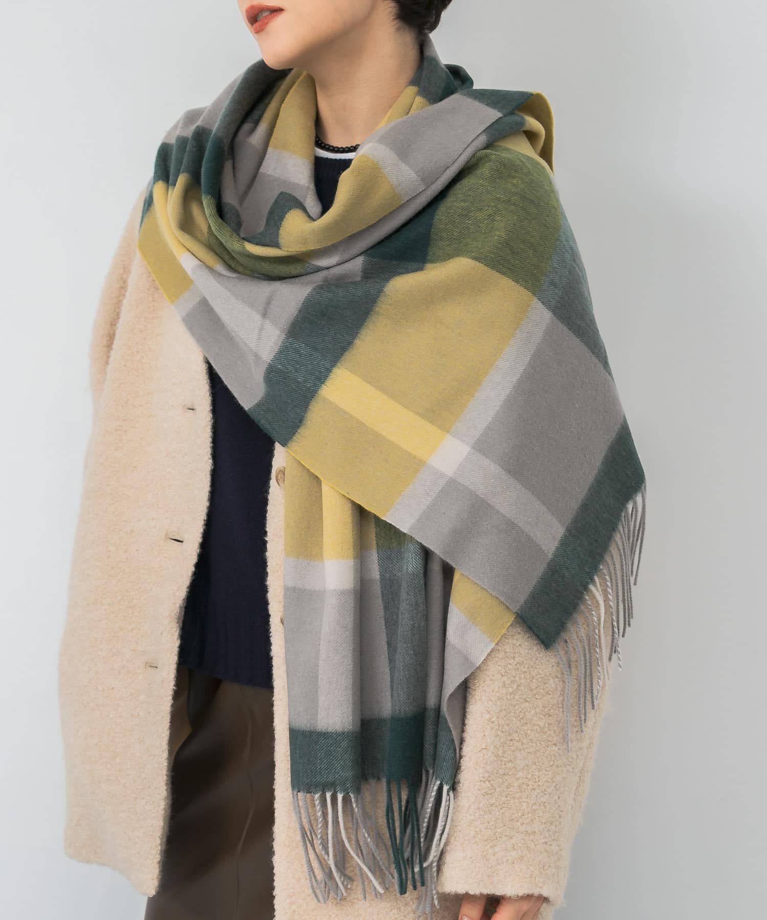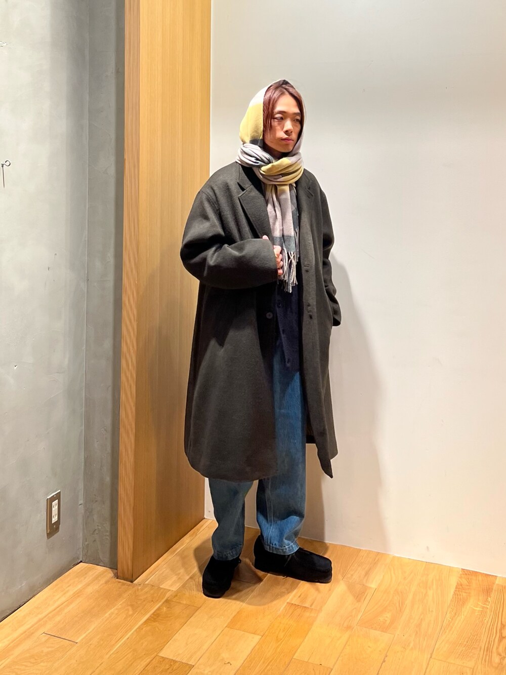 シンプルなコーディネートには、大判ストールのバラクラバ巻きでアクセントを🧶