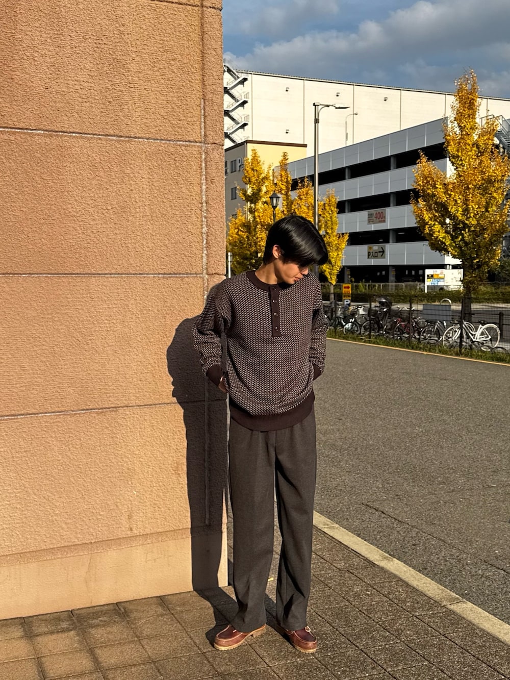 今回のコーディネートはヘンリーネックのバーズアイニットに静電気防止ウールタッチスラックスを合わせたコーデです!ニットはこれからの季節ジャケットのインナーとして活躍するのでとてもおすすめです!スラックスはシルエットも履き心地も良くおすすめです!ぜひ参考にしてください!