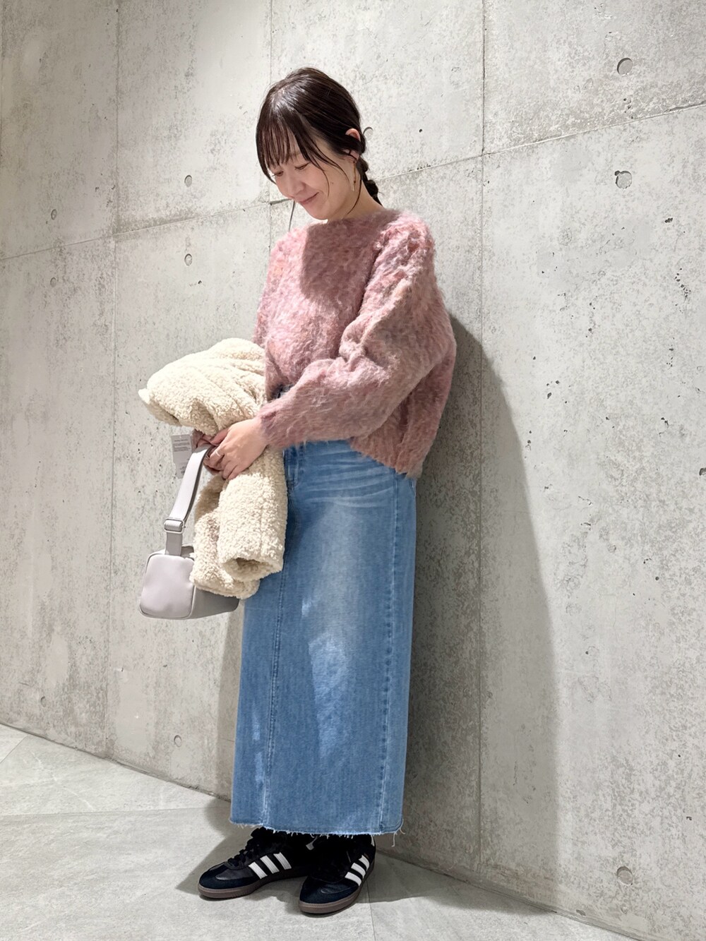 今回は、デニムのロングスカートを合わせた、カジュアルスタイル。