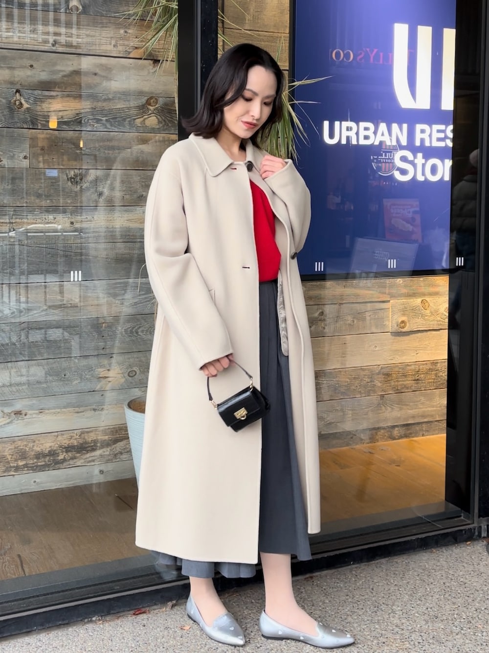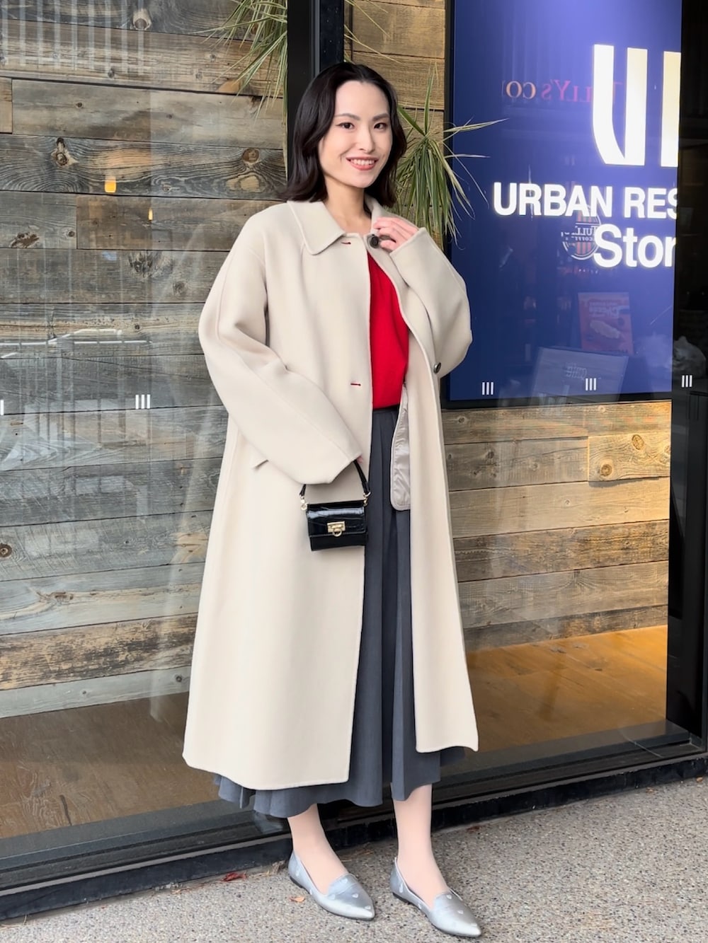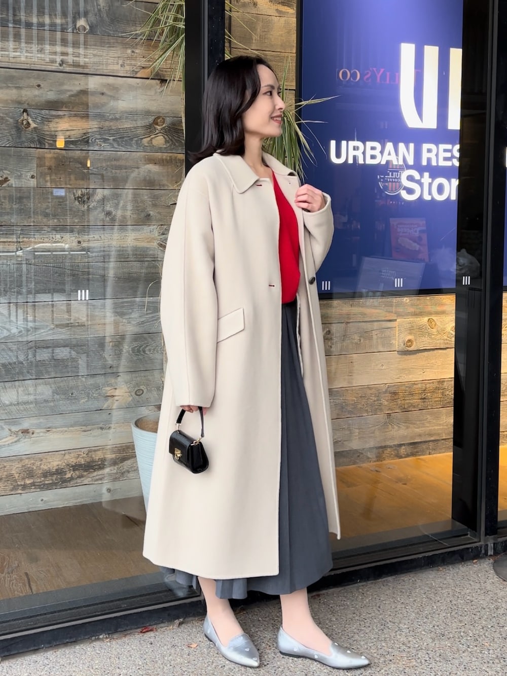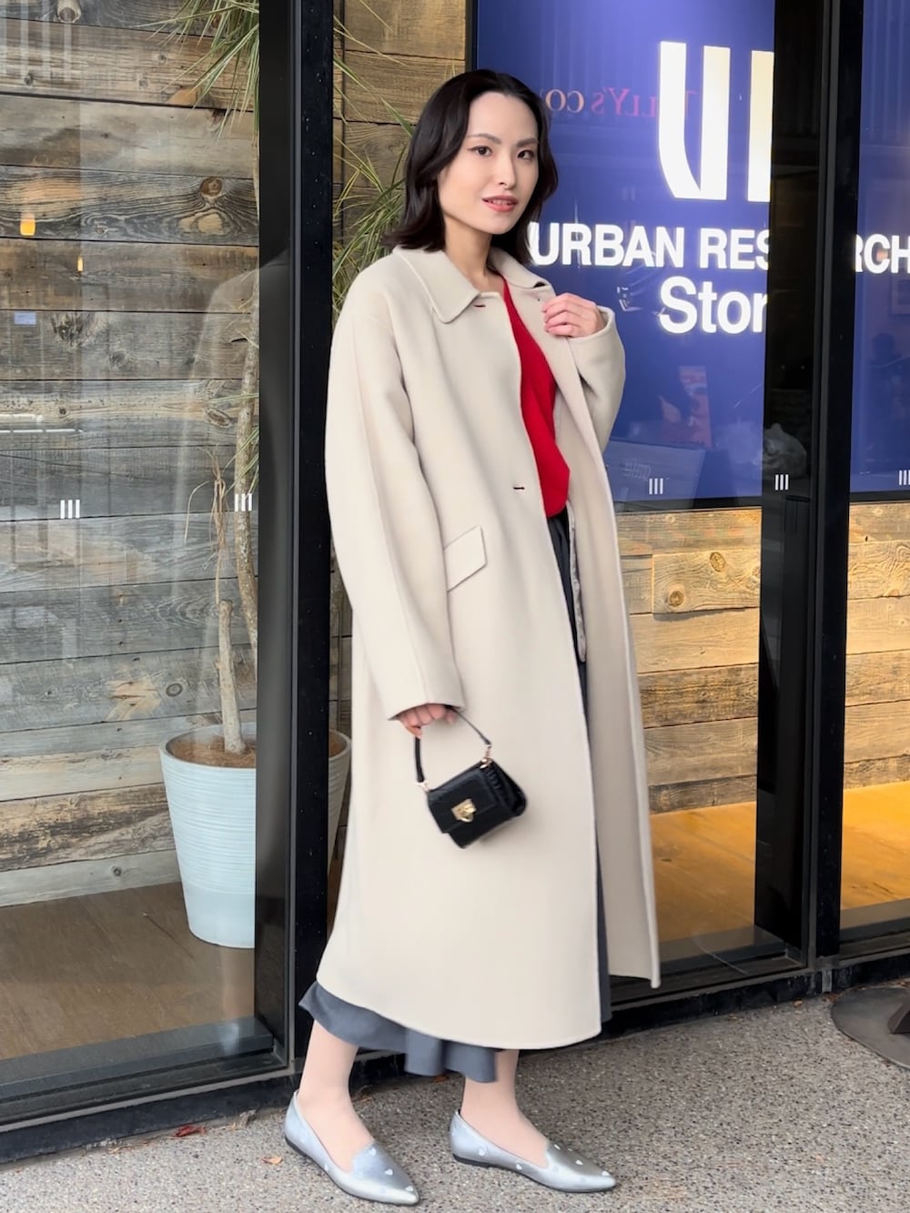 コートはロング丈でウールが80%も入っているのに生地が軽くて柔らかいのが特徴。