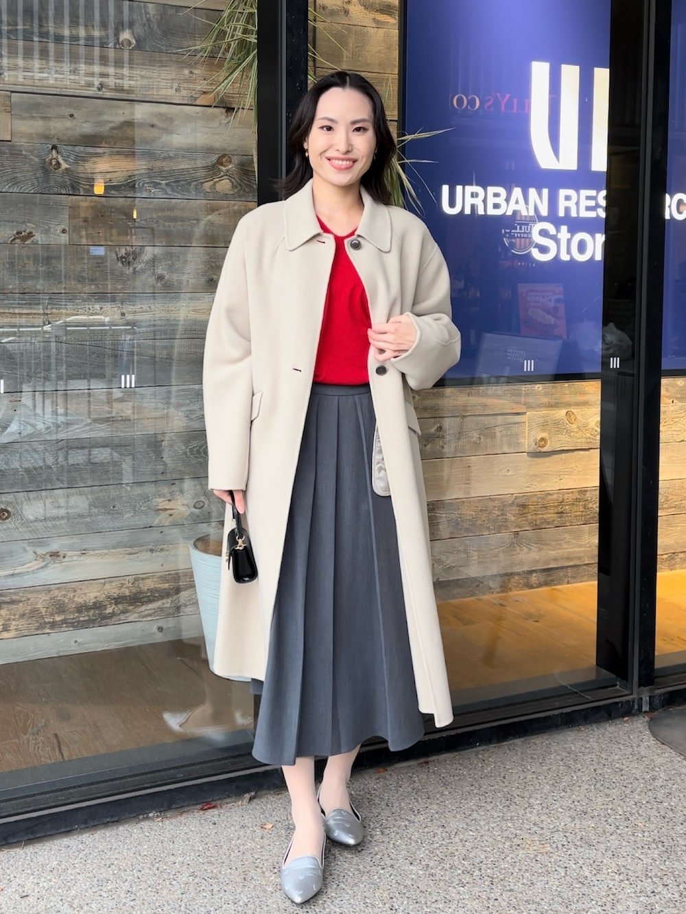 赤ニット×プリーツスカートのきれいめコーデ❤️🩶