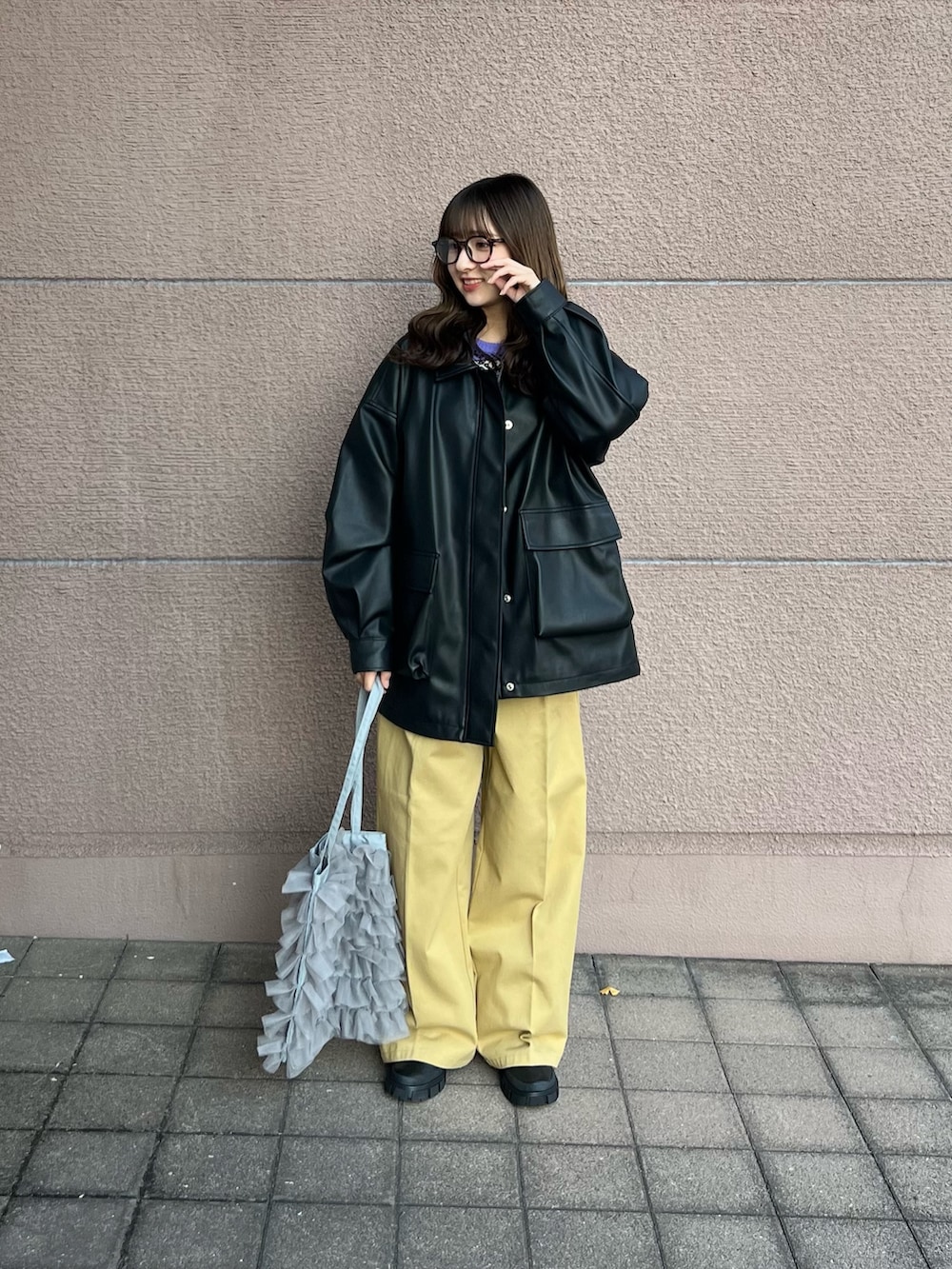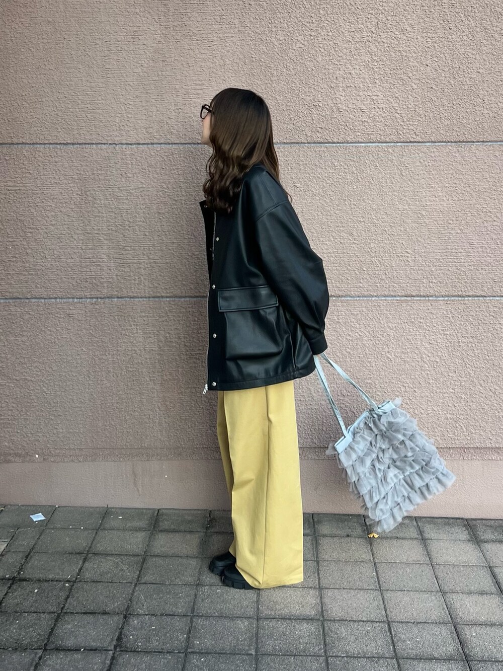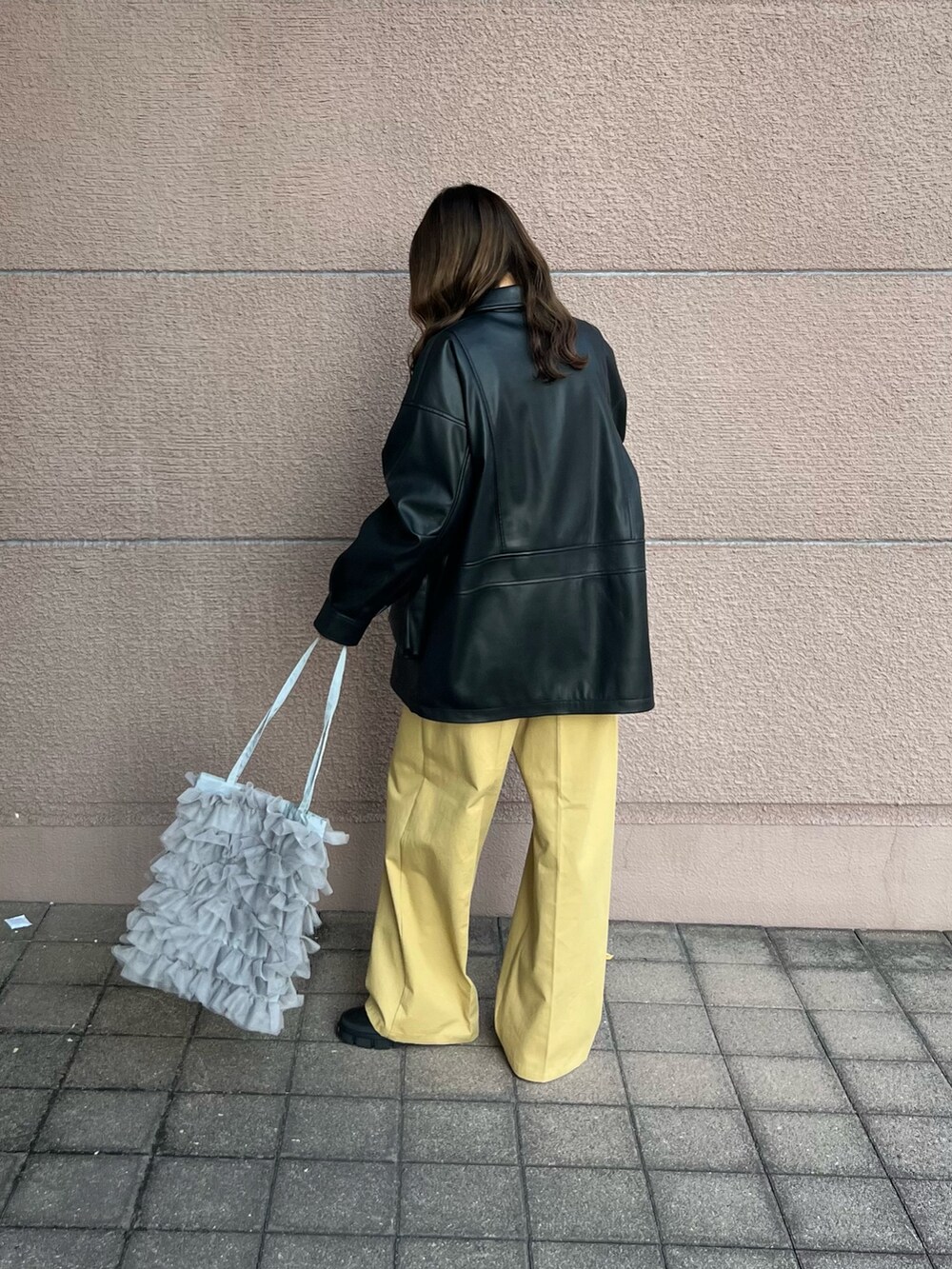 レザージャケットはオーバーサイズになっていてゆったり着ることができます!メンズの方でも着ていただけるアイテムになっています!