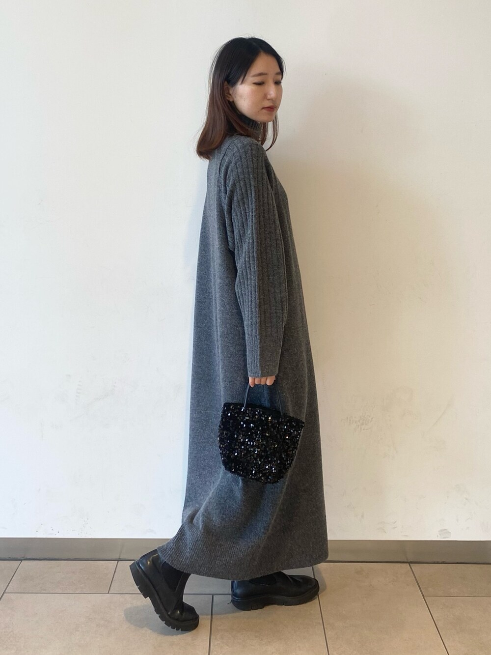 SENSE OF PLACEハイネックセンターシームニットワンピース