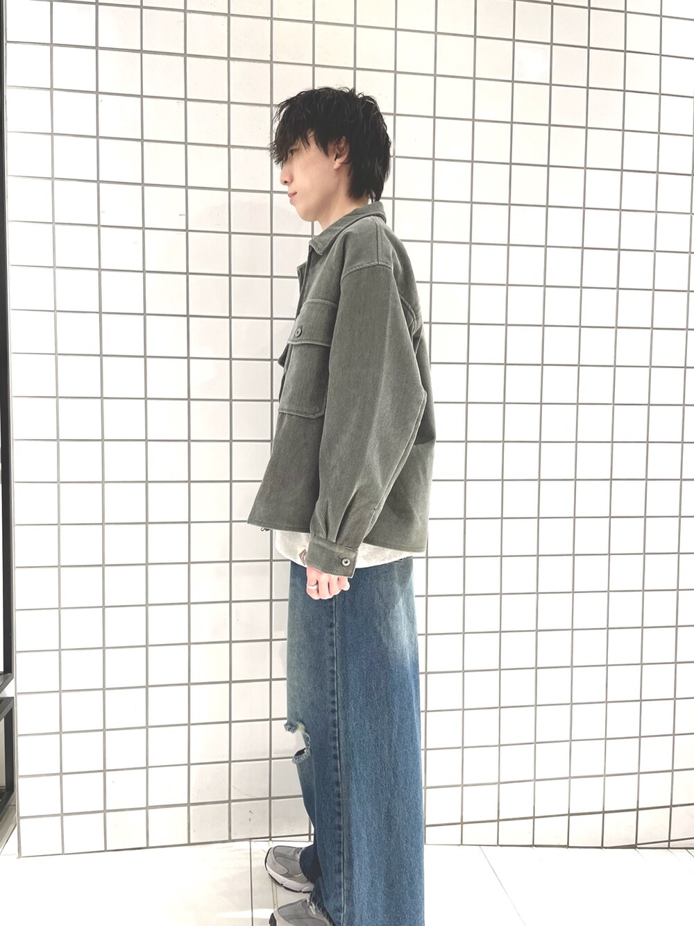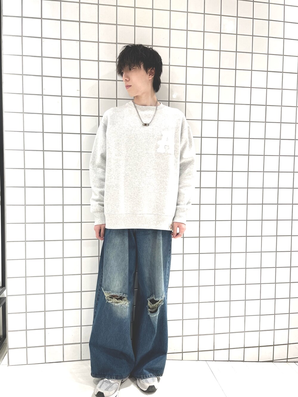 ダメージデニムのワイドシルエットが絶妙で丈も長めで裾に溜まる感じが可愛くておすすめです!