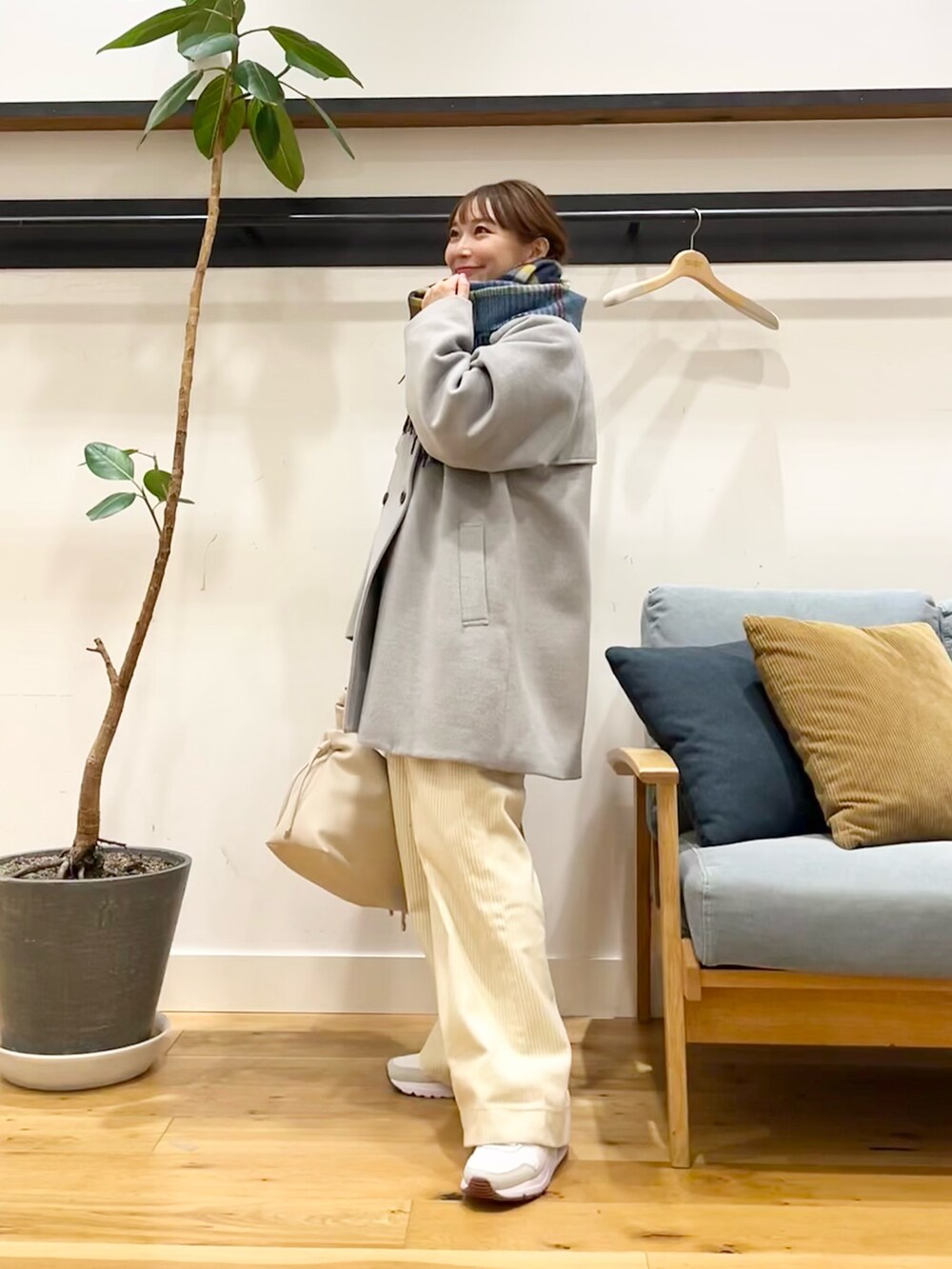 明るいグレーなのでコートを着た状態でも明るい印象になるのが良いですよね♪
