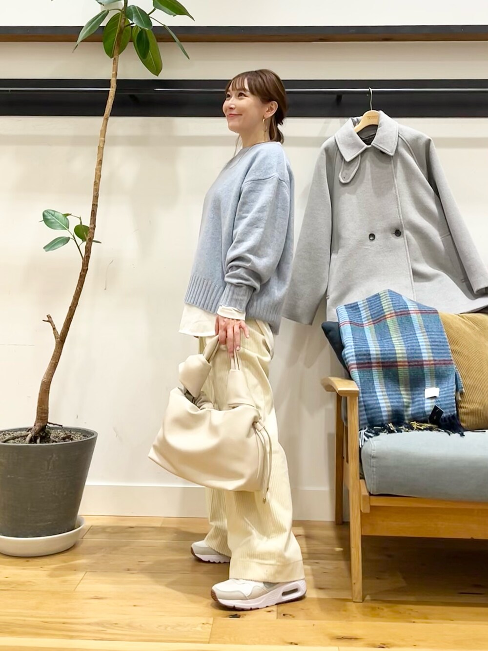タートルが増えてくるこの季節、首短めの私にはクルーネックのあったかニットはとっても助かります!