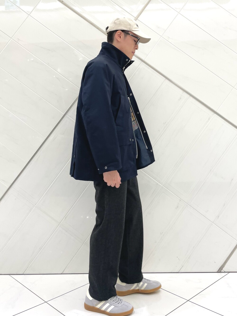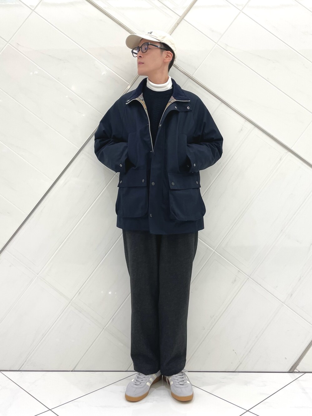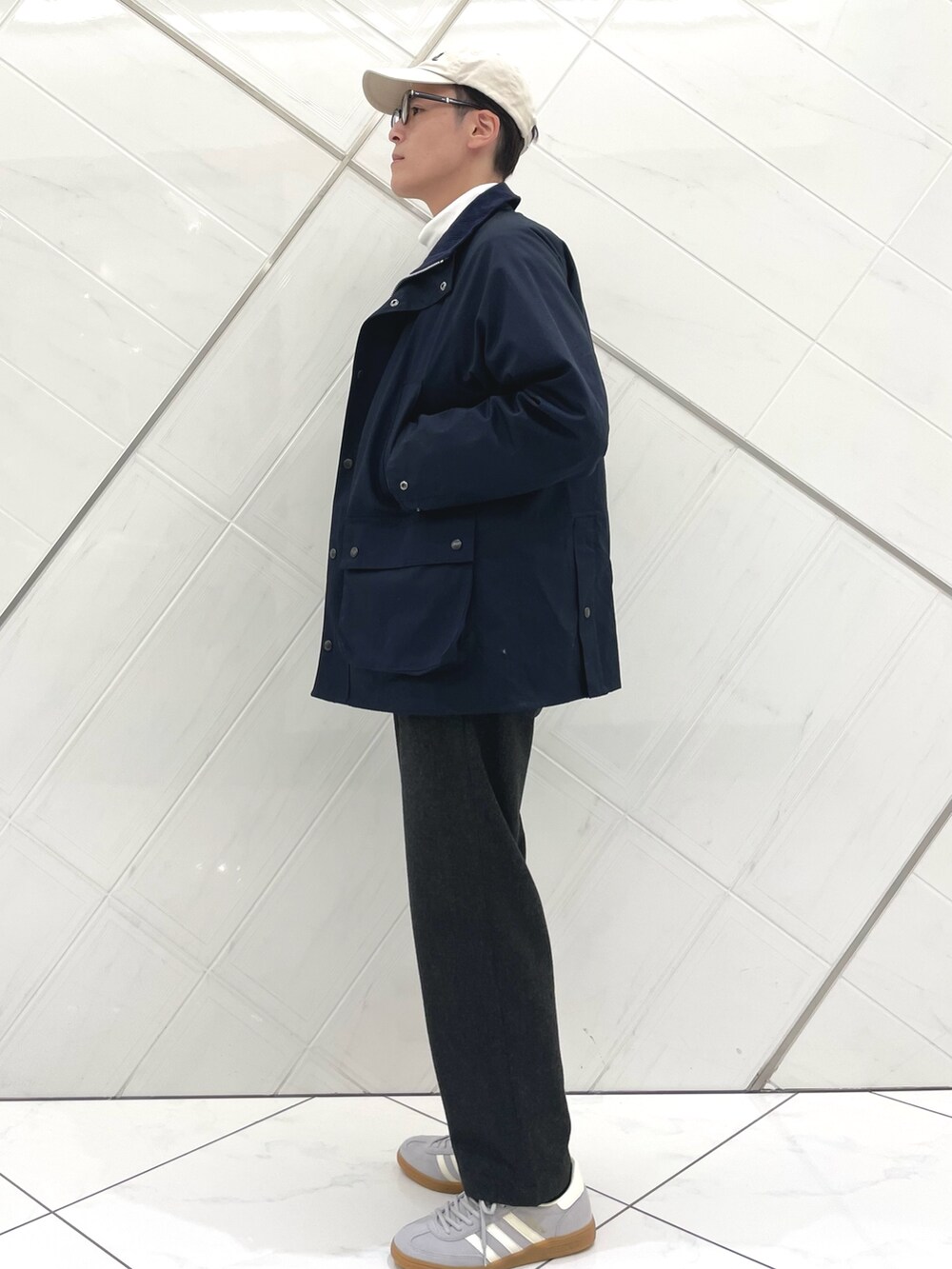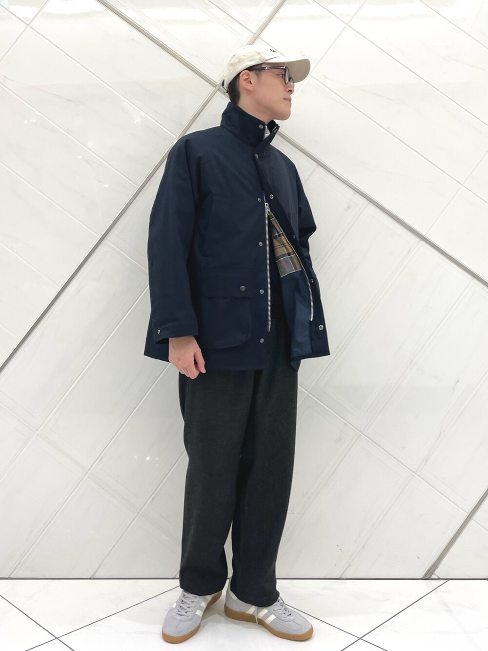 Barbour×DOORSのBEDALE STANDCOLLARを着用したスタイリングです。