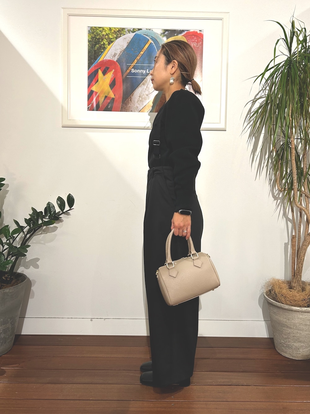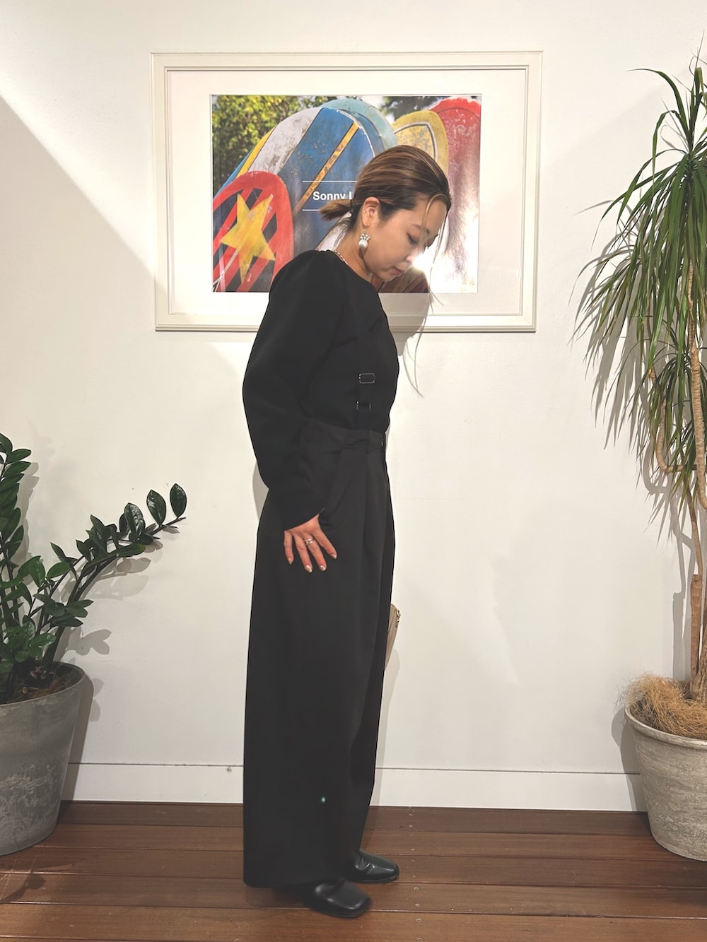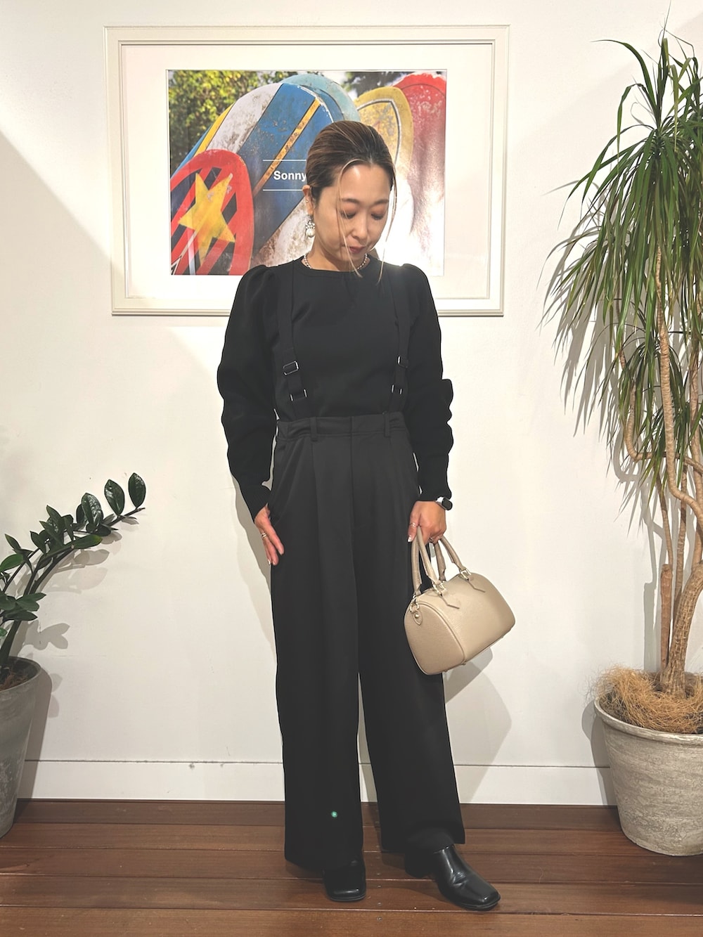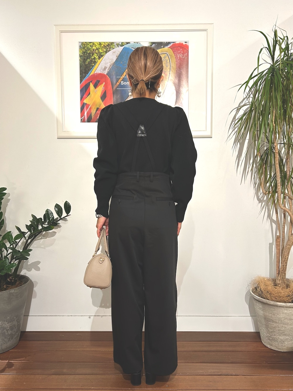 サスペンダーの取り外しが出来るタックパンツは綺麗めコーデの時にも使える優れ物!シルエットも綺麗なので着痩せ効果抜群です!