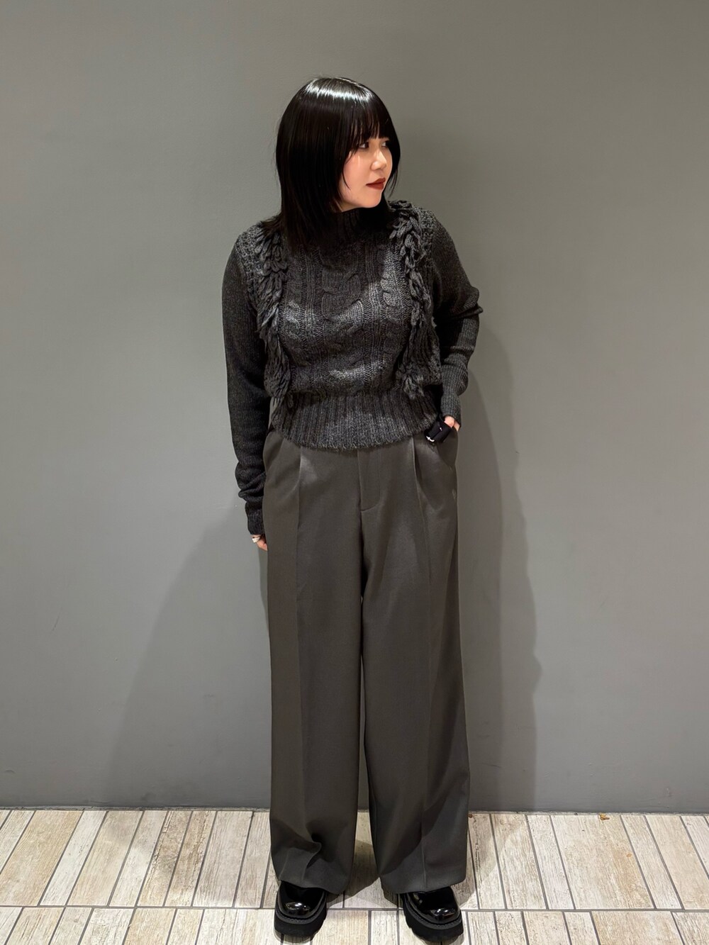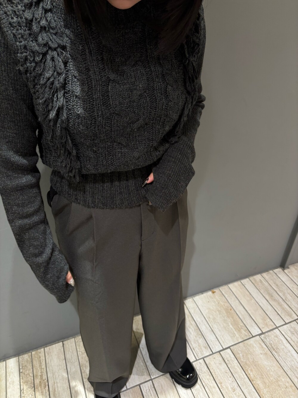 ベストをレイヤードしたようなデザインが可愛い新作アイテムです!ケーブル編みとループが施されたフロント部分がアウターからもチラ見せできるので推しポイント🪄袖は細身のリブになっていますが、二の腕ムチムチの私でもゆとりのあるサイズ感になっております!