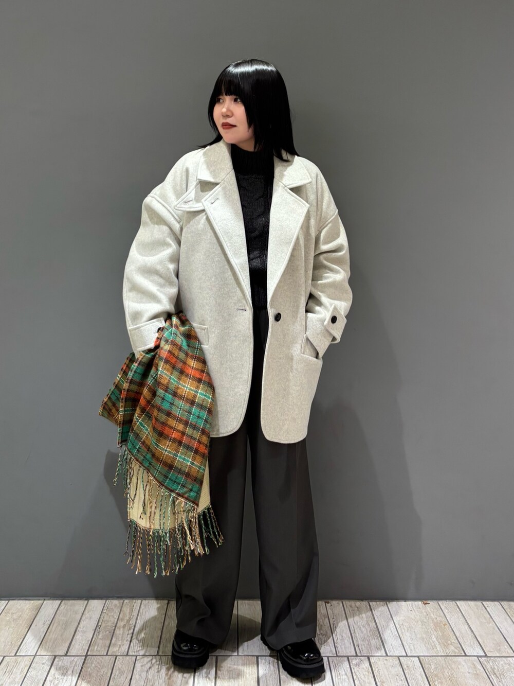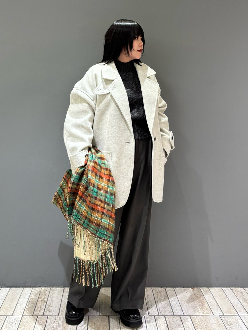デニム~スカートまでカジュアルやフェミニンなスタイルにボトム問わず着ていただけるので、この冬活躍すること間違いなしです!!