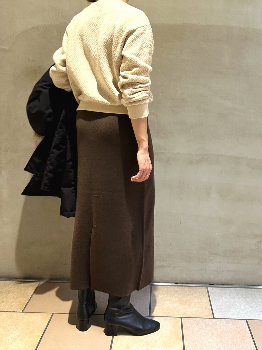 楽チンな裏起毛のカットソーと、腰回りストレスフリーなニットのスカートで、リラックスして楽しめるようにまとめました!