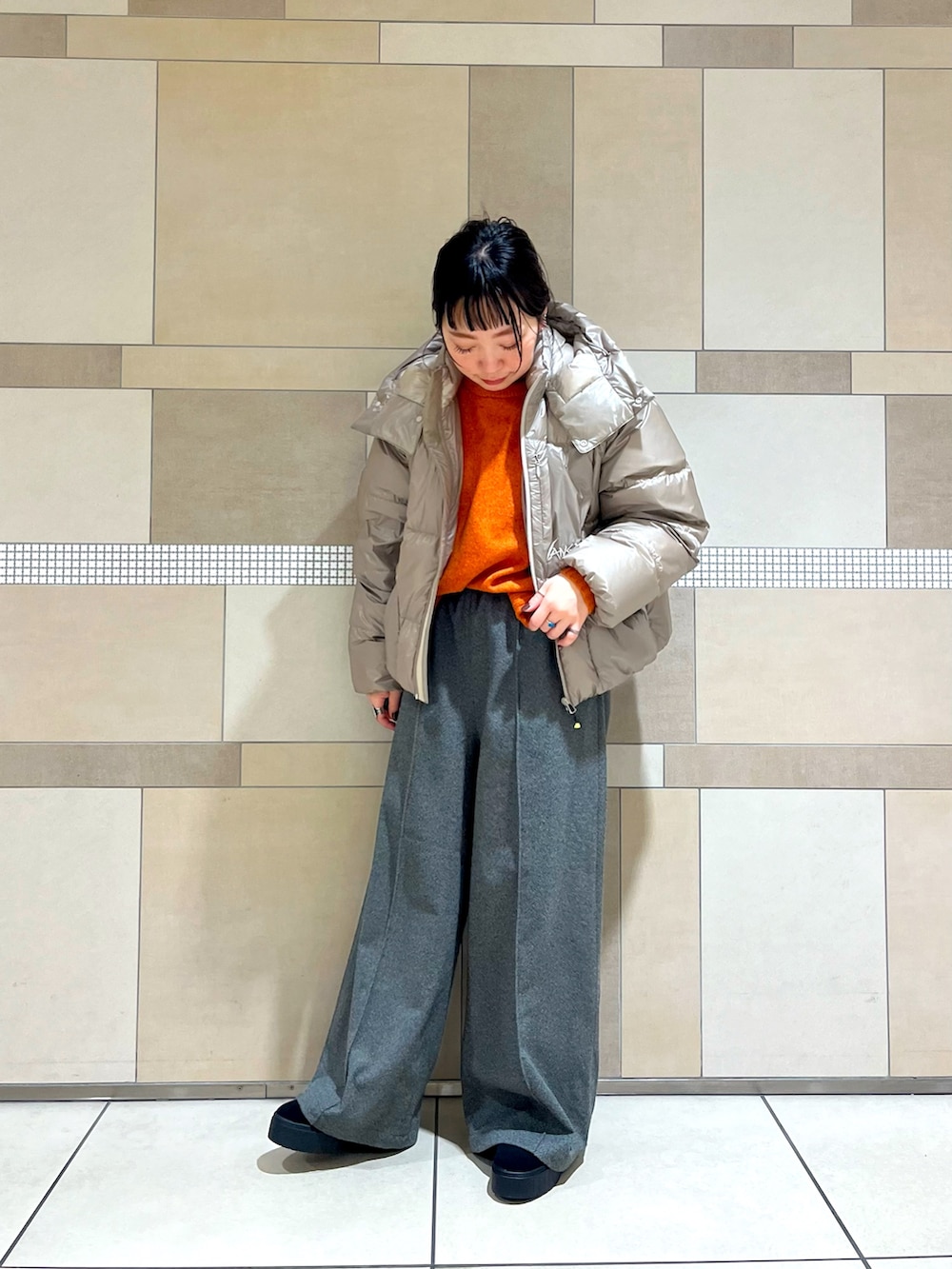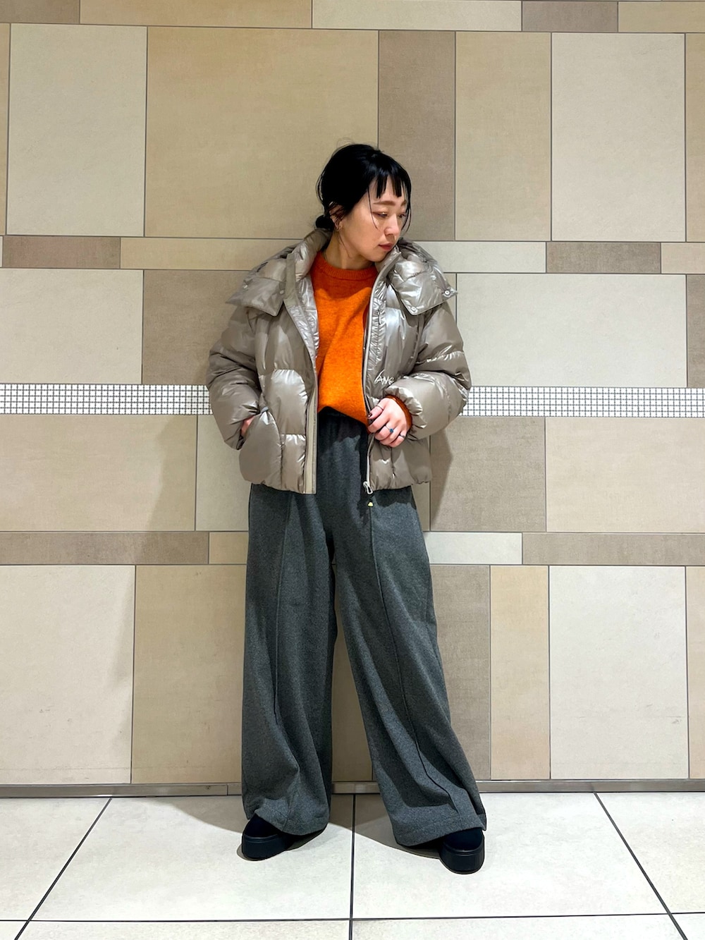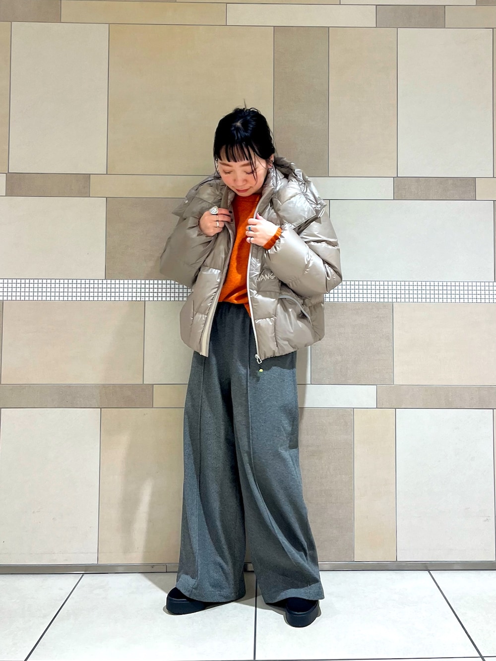 艶感のある生地は、ダウンジャケットのカジュアル感を抑えキレイ目なスタイルにも取り入れやすく。