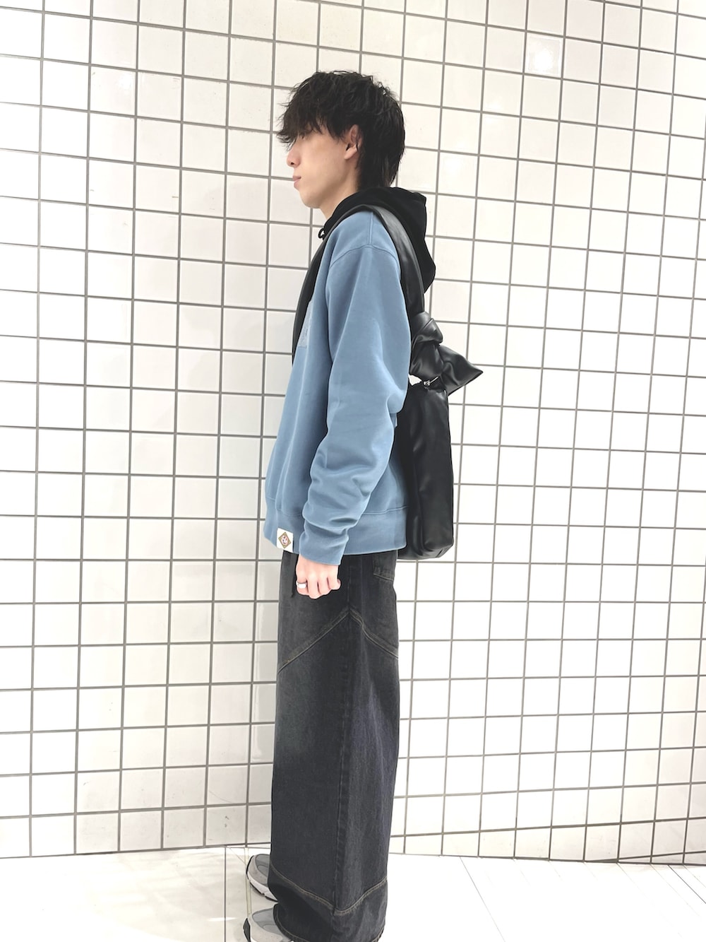 スウェット×パーカーのラフなレイヤードスタイルになります。