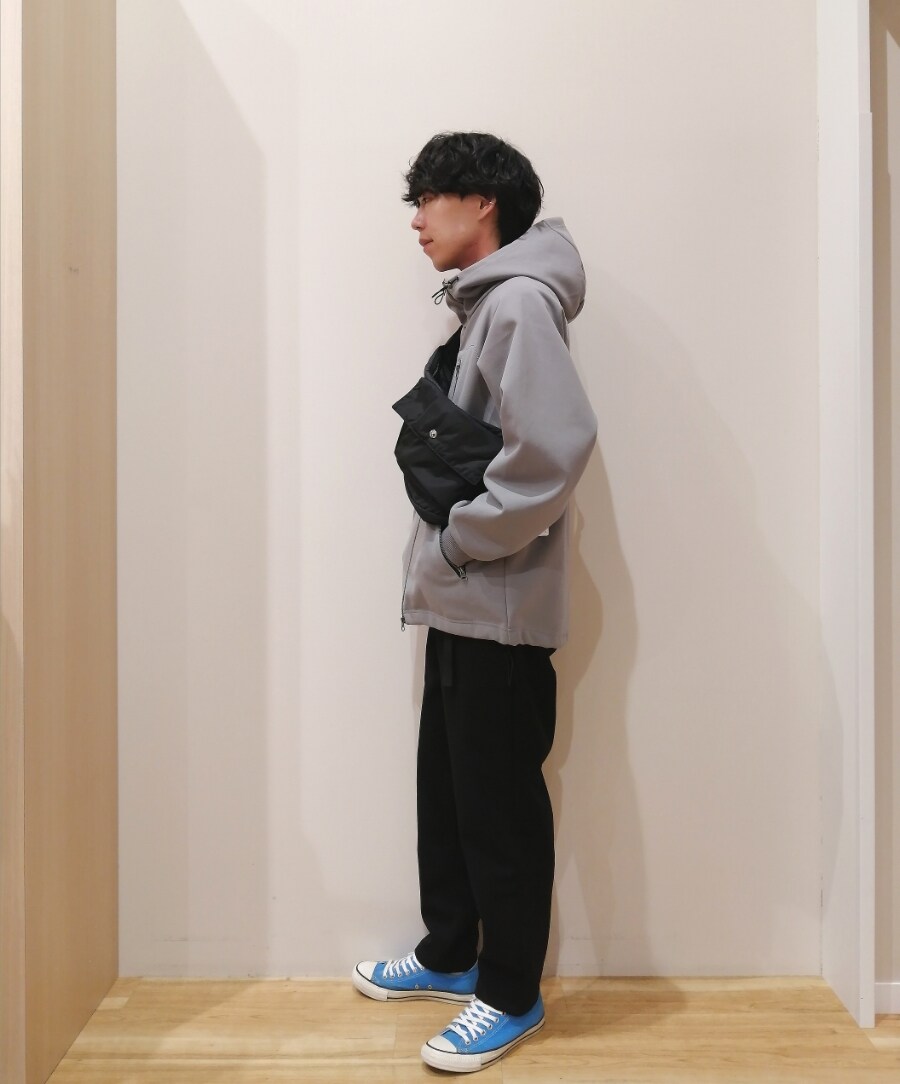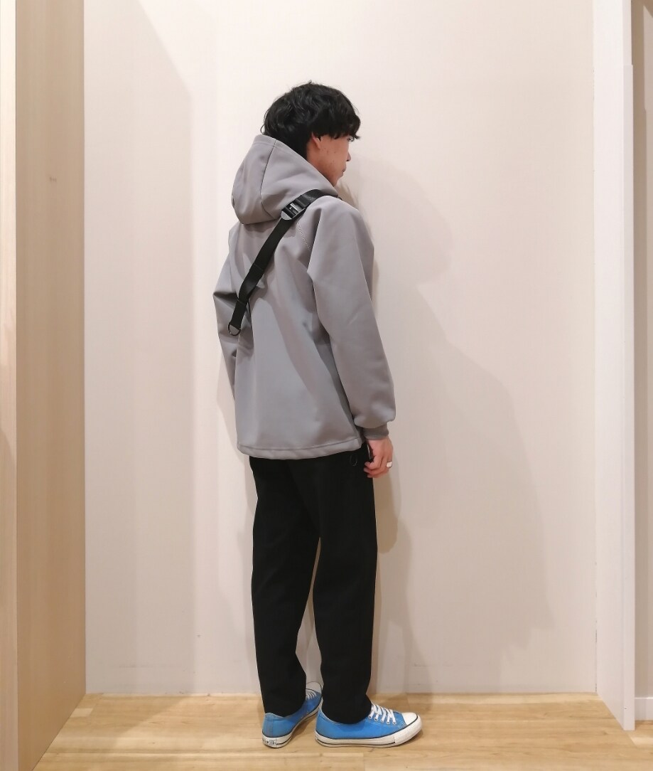 裏フリース素材の保温性の高いアイテムを使ったカジュアルスタイルになります。