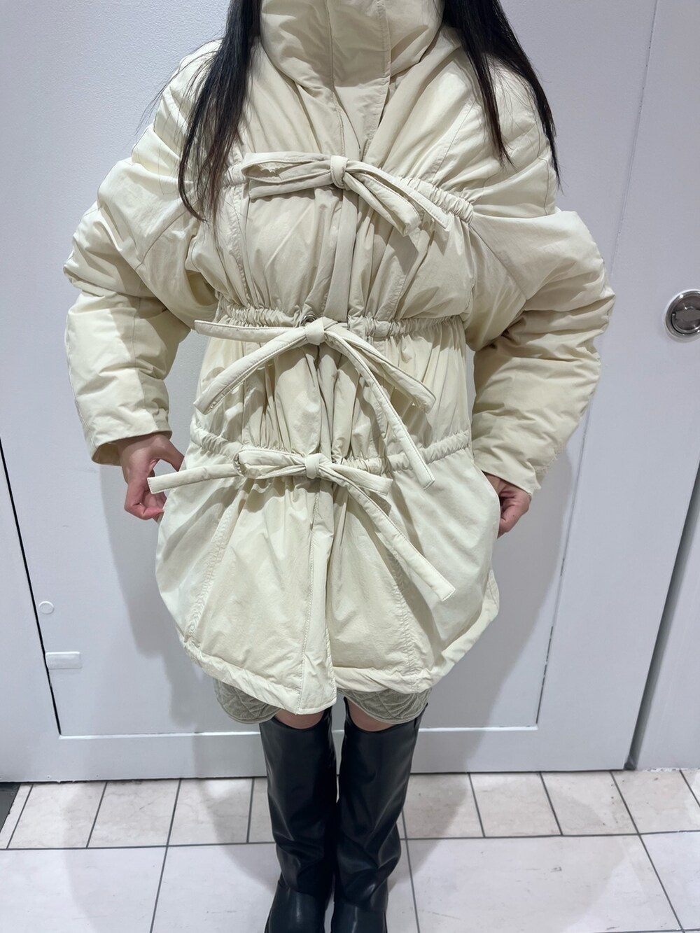 新色のアイボリーになります🎀リボンに絞れるのでメリハリをつけて着ていただけます👌🏽