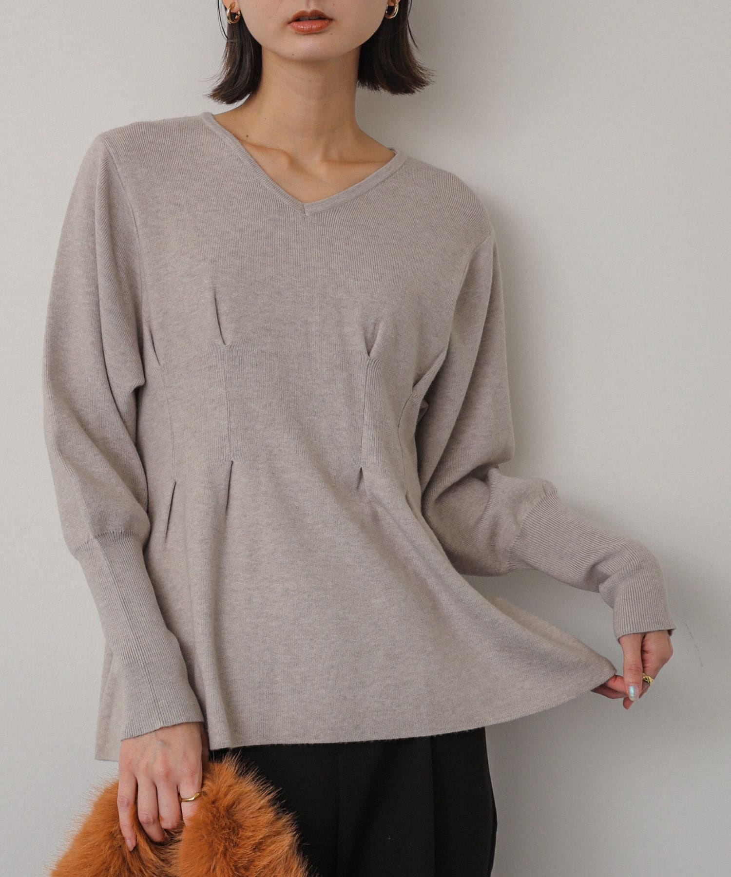トップスはウエストタックが入っているのでタイトなボトムスとの相性◎
