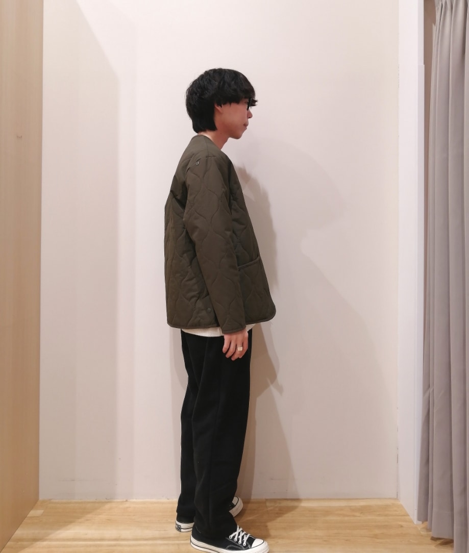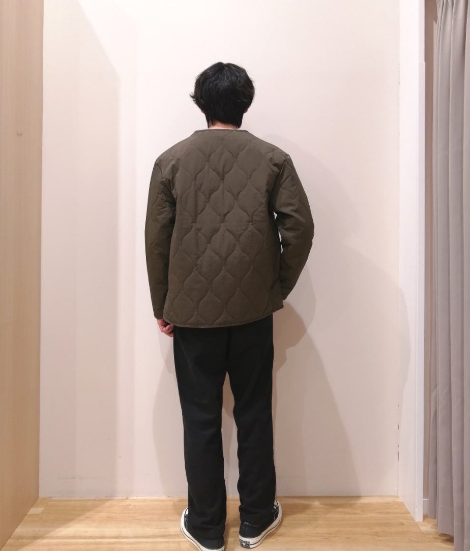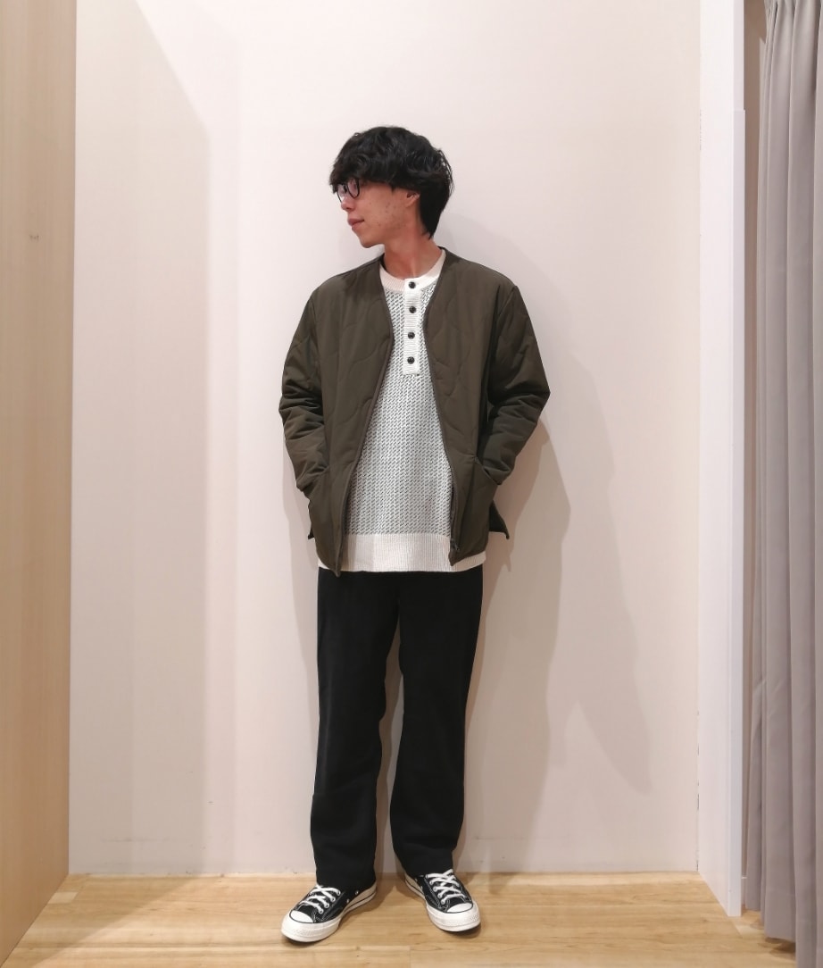 キルティング×バーズアイニットのミリタリーコーデになります。