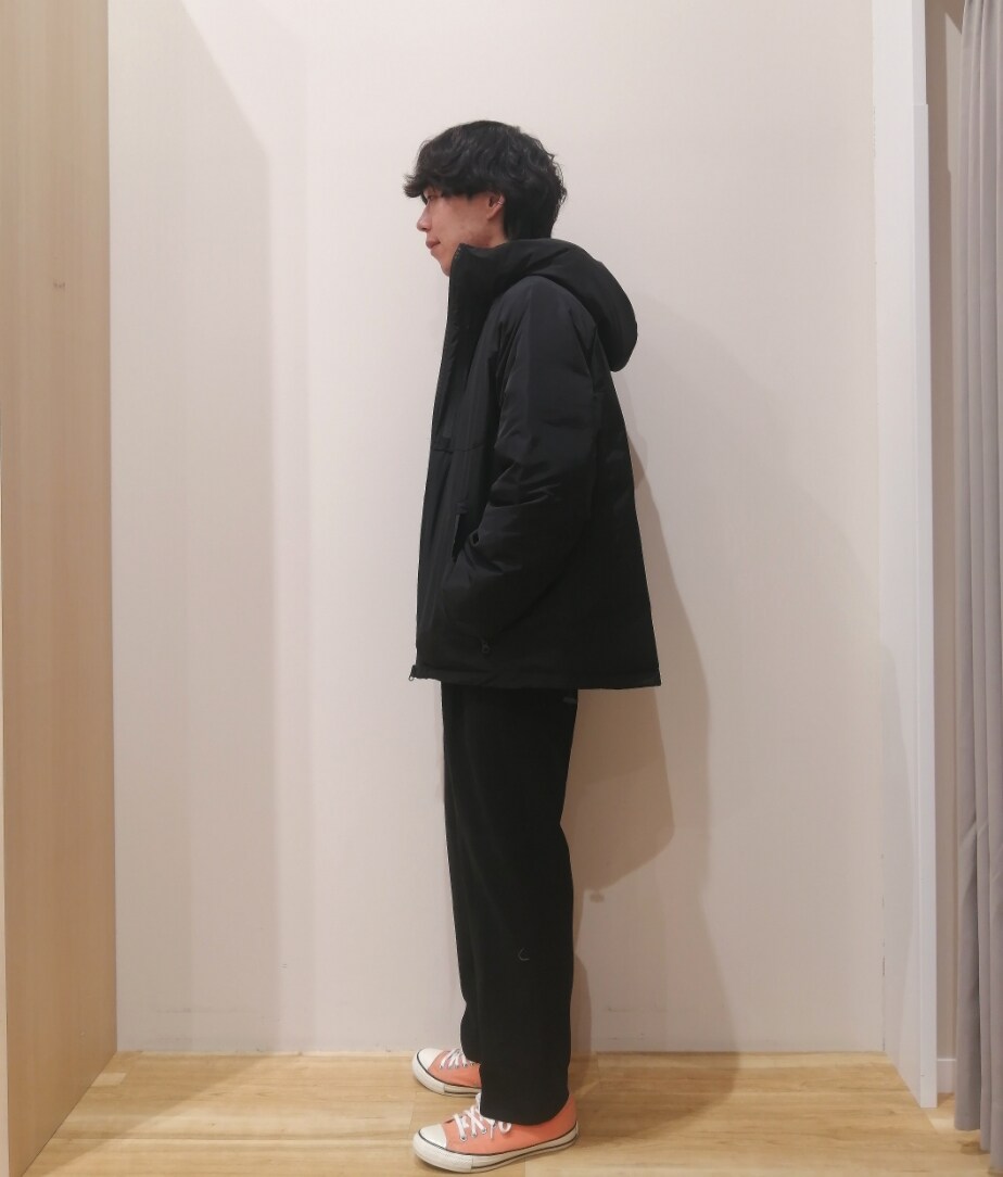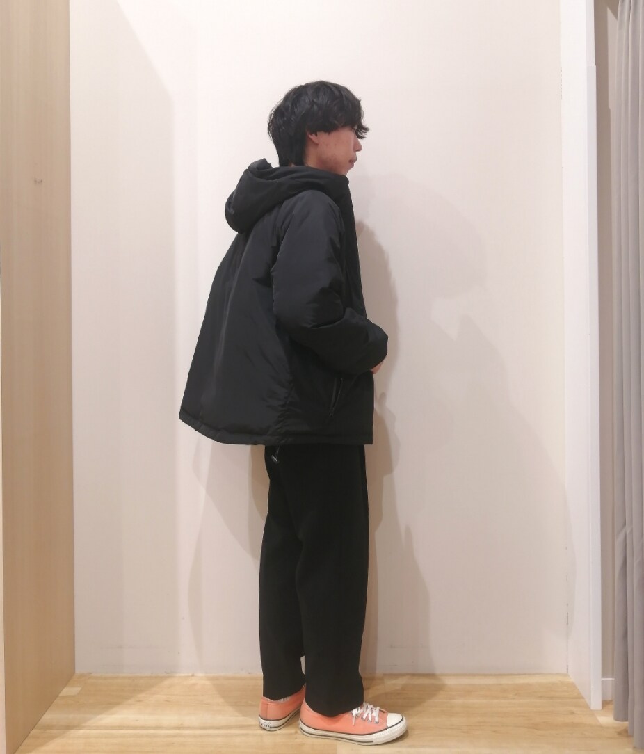 オレンジをアクセントにしたダウンジャケットコーデになります。