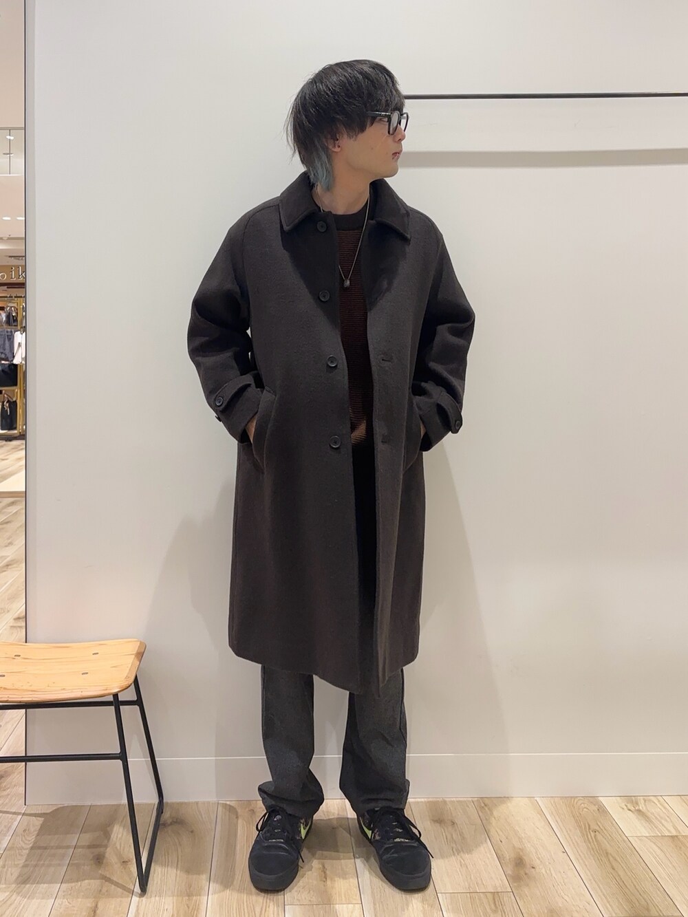 パンツはウールブレンドのヘリンボーンタックパンツで季節感◎