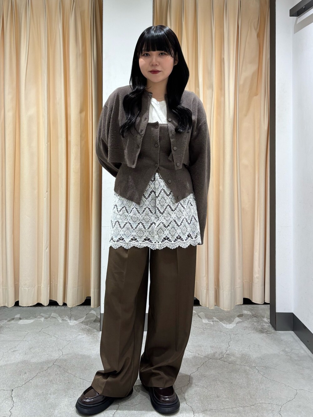 カーディガンはコンパクトな丈感と首元のキーネックがスッキリ見えるのでオススメです👀