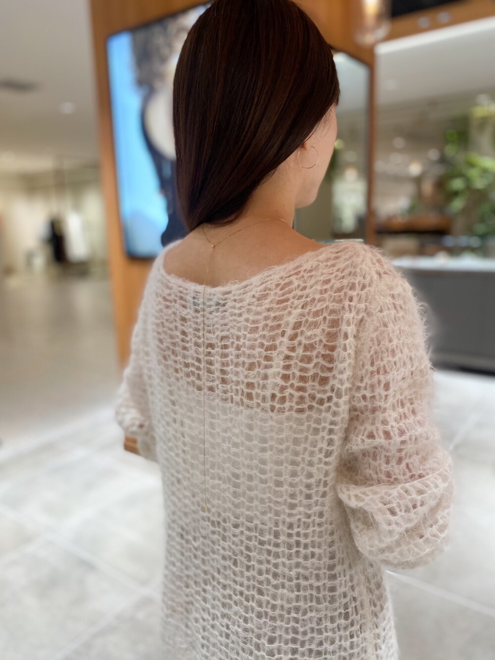 今回は洋服に合わせて短くして後ろにチェーンを垂らして着用してみました。