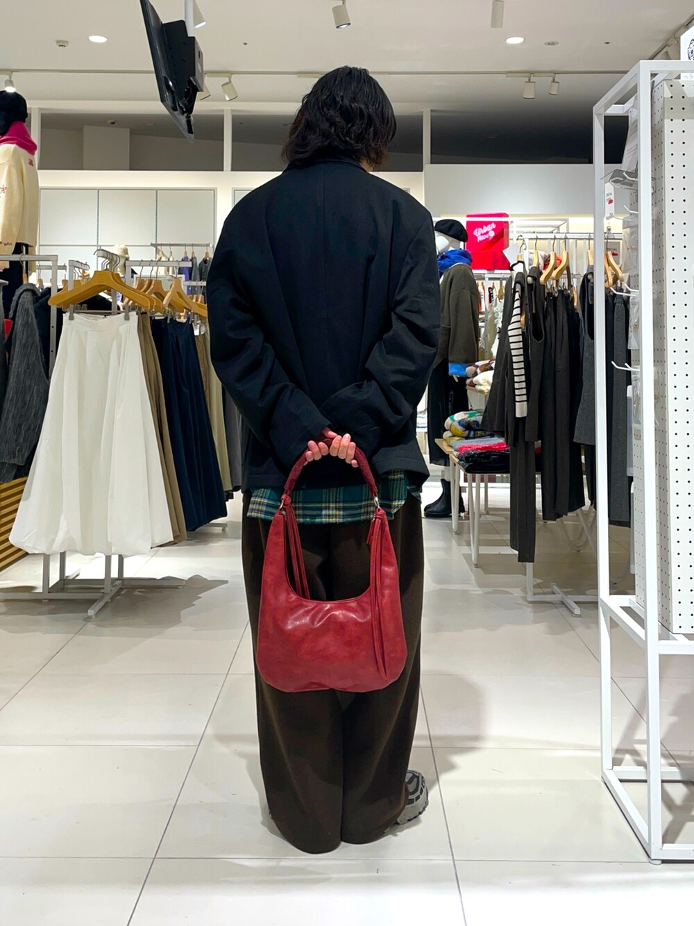 サイズ感やスニーカーを合わせて、カジュアル要素もしっかりと。