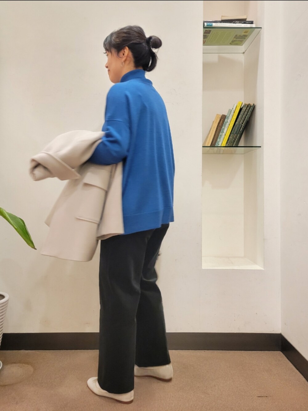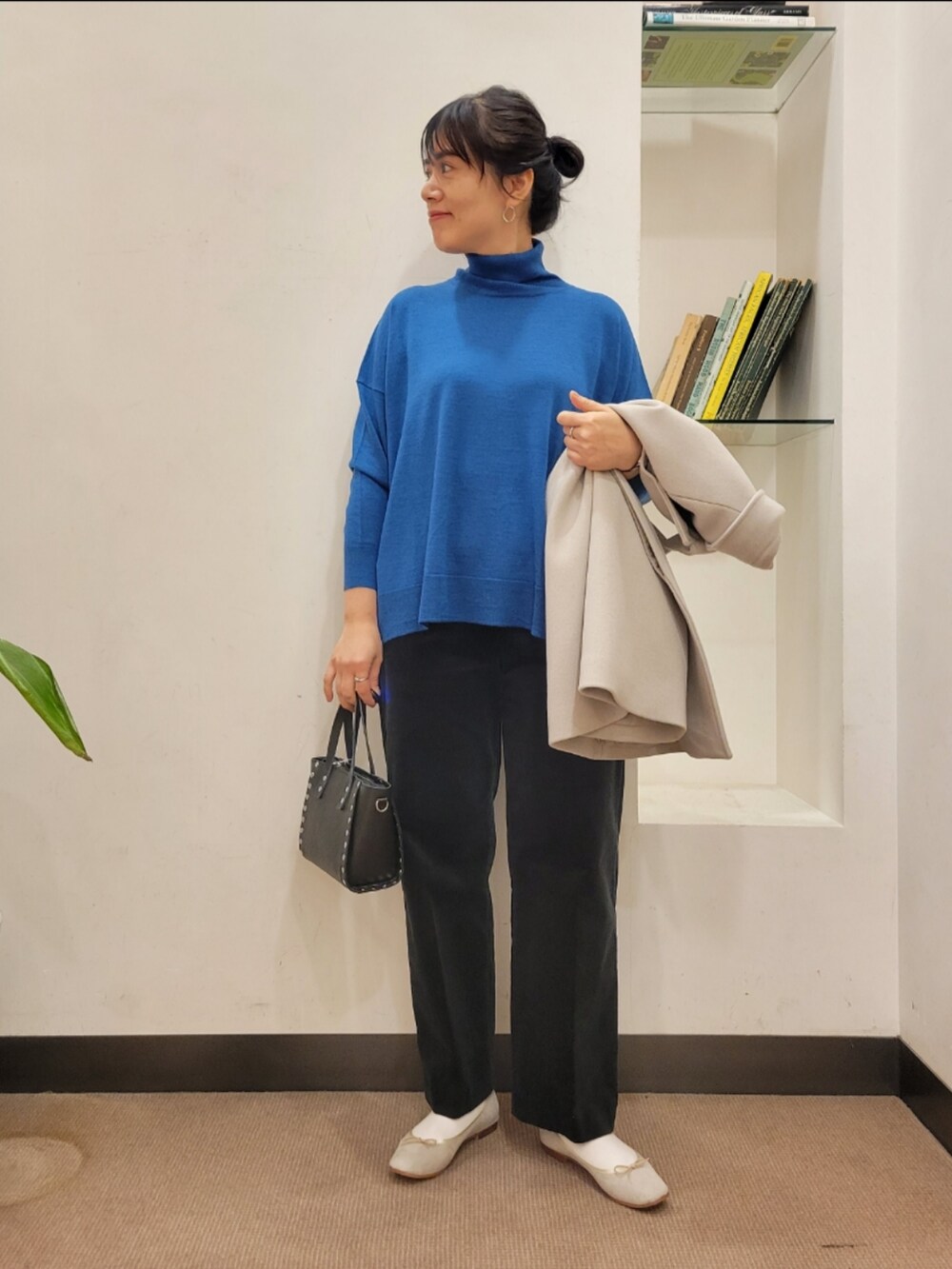 厚手のアイテムも中に着やすいです。