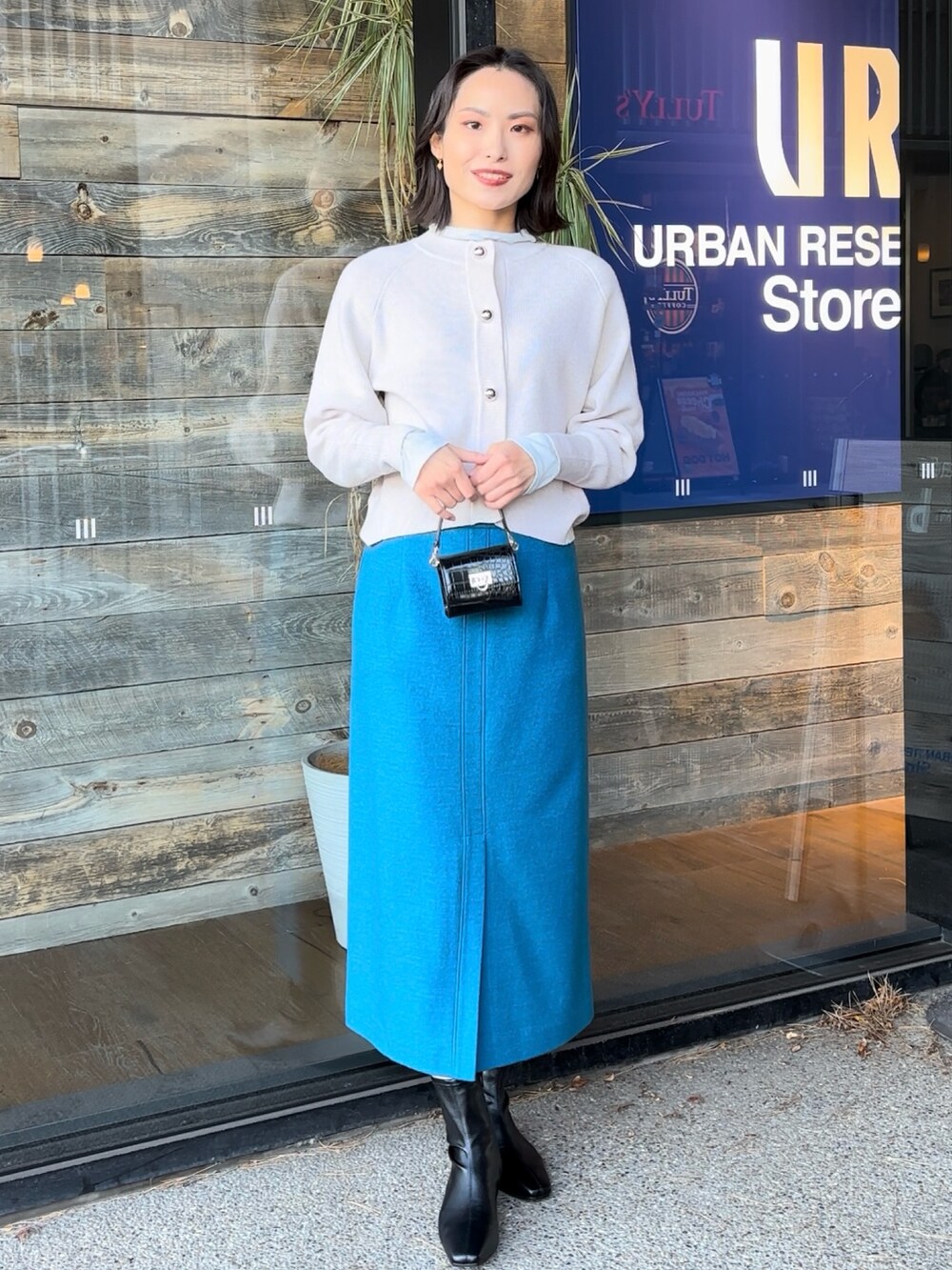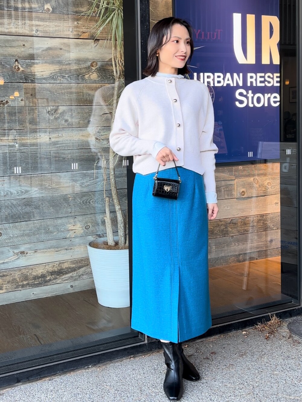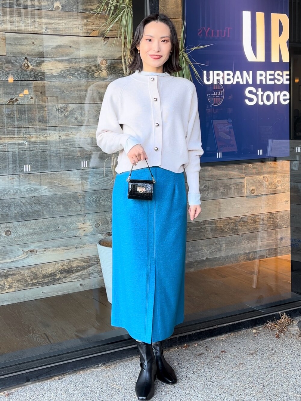 今回はカーディガンを引き立てるためにボタンを閉めて、中にスカートと同系色のインナーを合わせて統一感を出してみました!