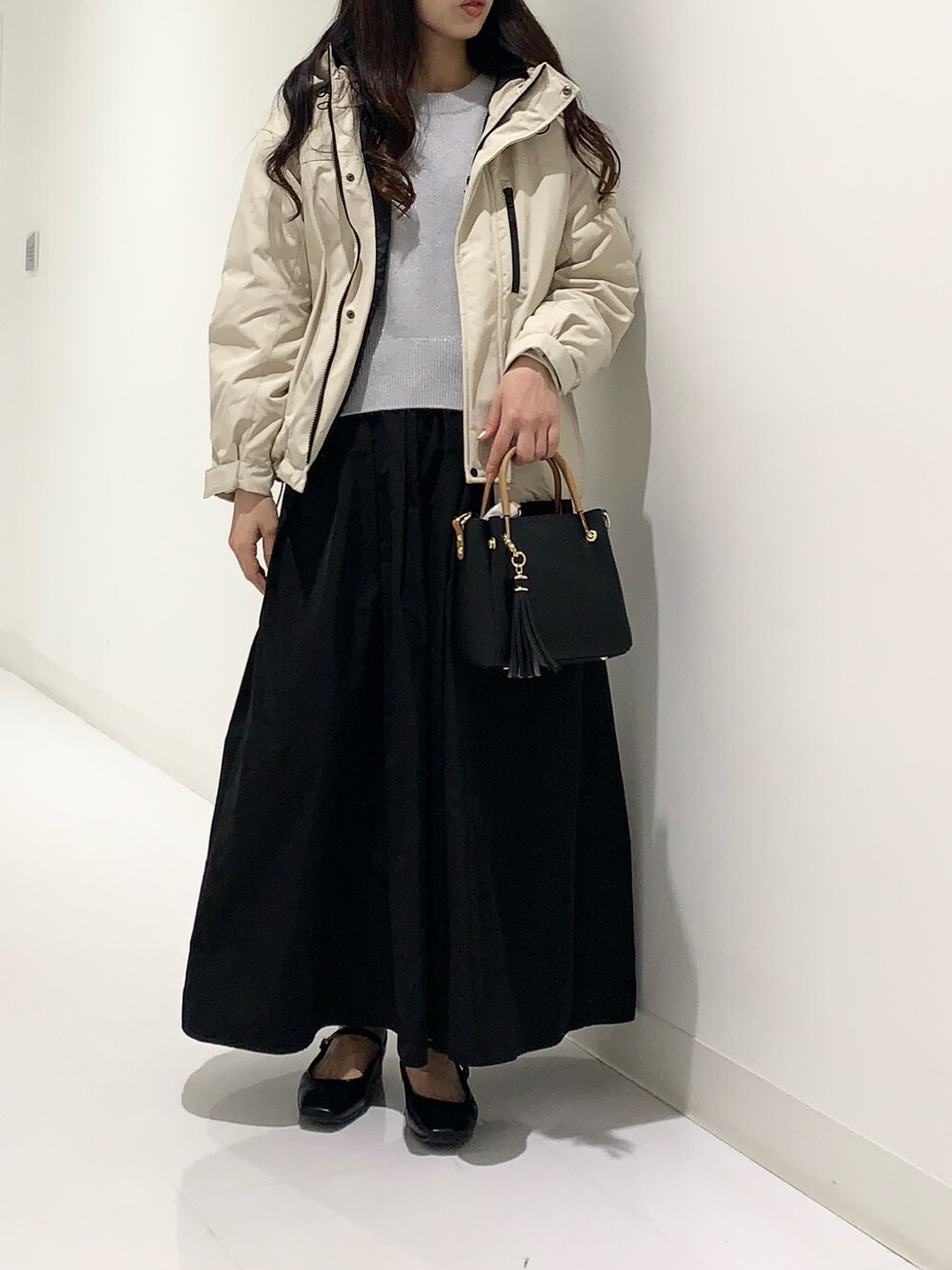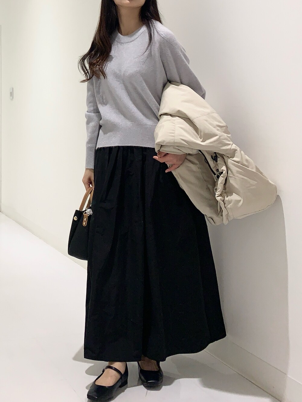 ボリュームがしっかりとでるスカートなのでショート丈のトップスと合わせたりトップスインして着用するのがおすすめです◎