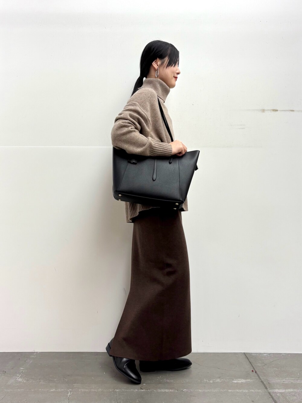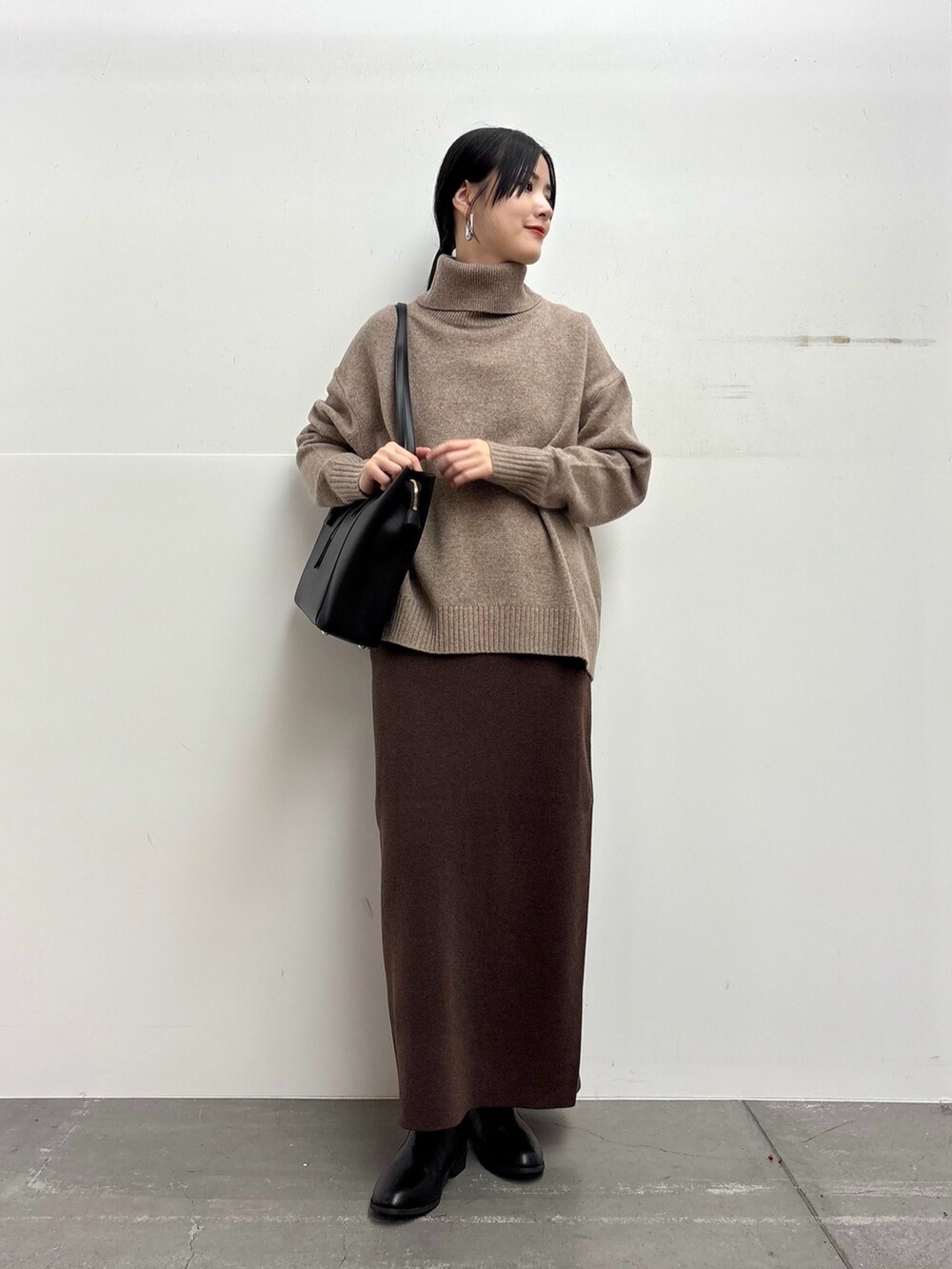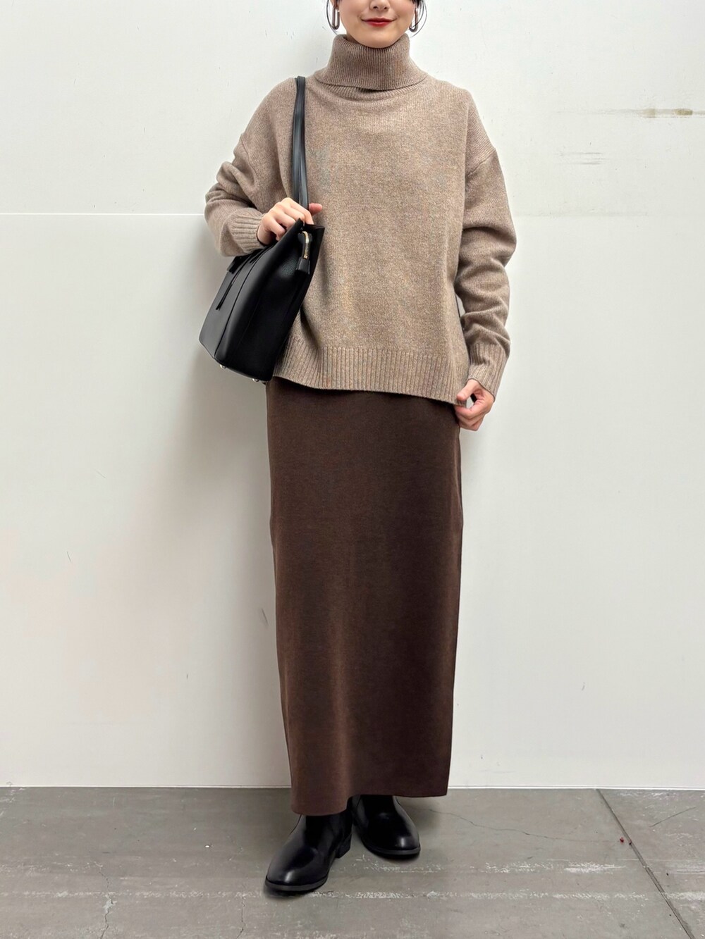 スカートは長めな丈感がきれいめカジュアルなスタイルにぴったりです◎