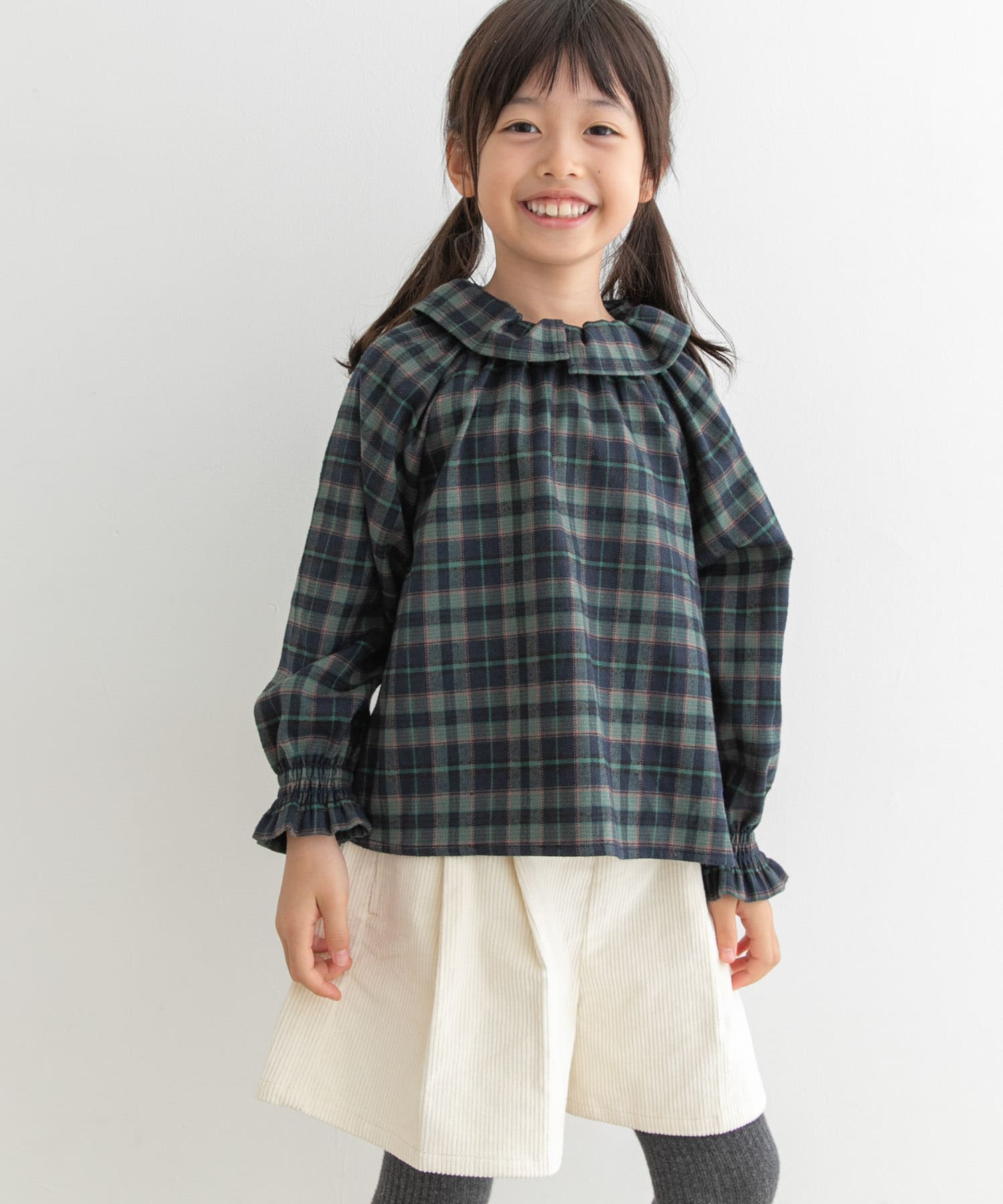 起毛チェックフリルカラーブラウス(KIDS)