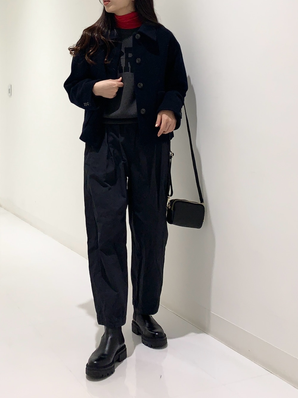 ゆとりのあるサイズ感なので厚手のトップスも合わせやすいです。