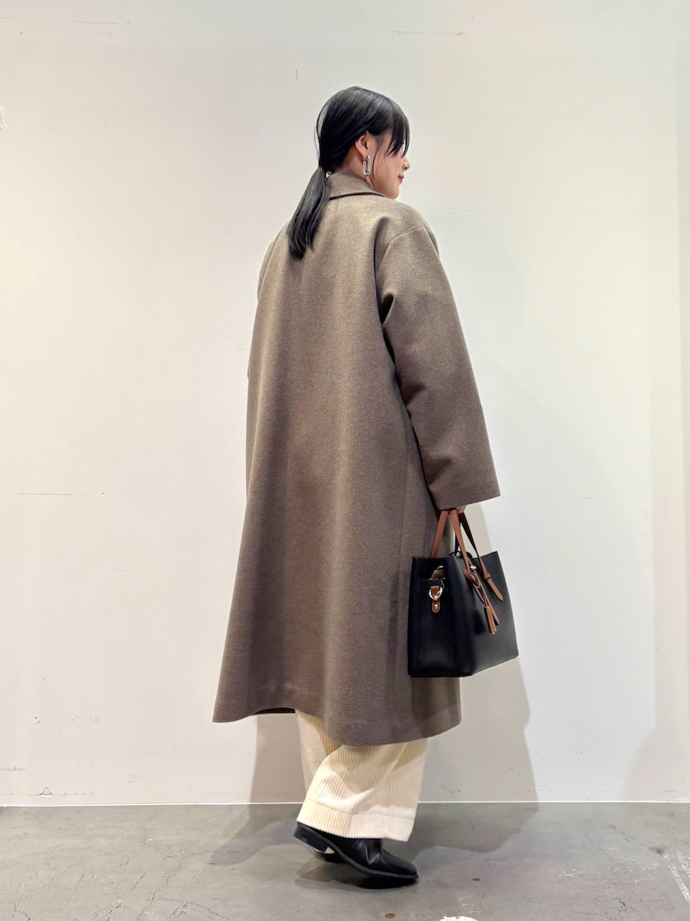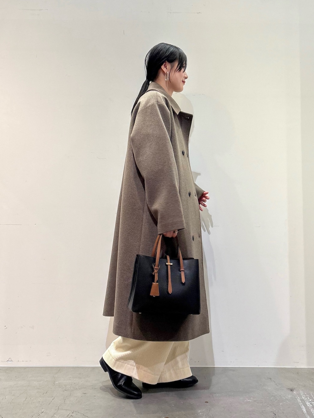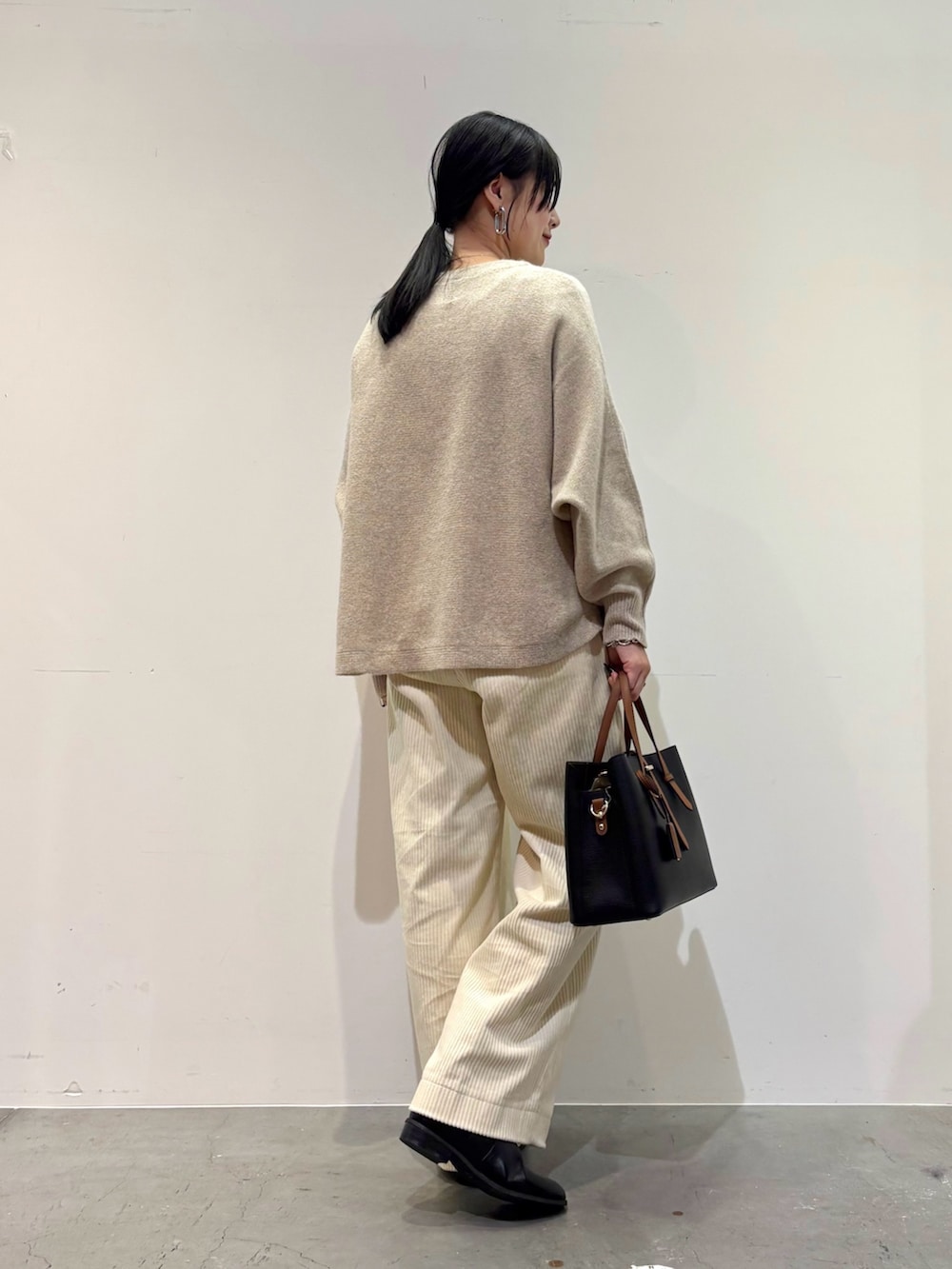 ニットとパンツはベージュ系でまとめたワントーンに。