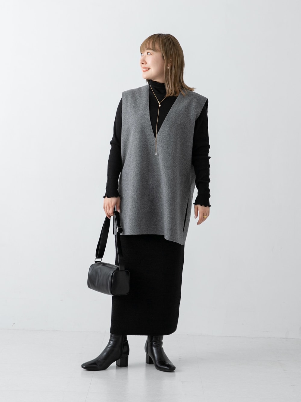 ニットスカートは短めなので低身長さんにもおすすめです!