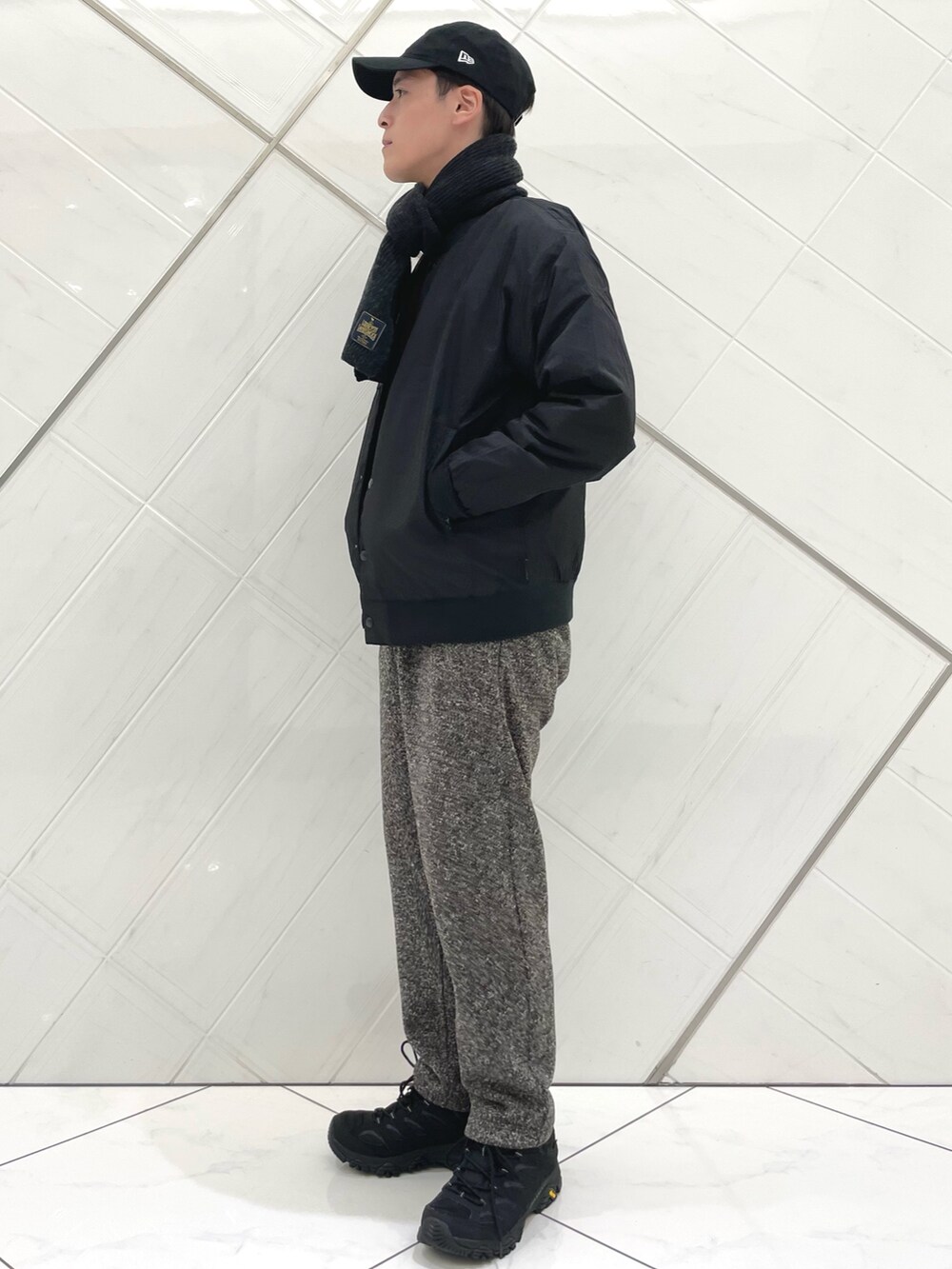 DOORS別注の GRAMICCI×TAION のリバーシブルダウンジャケットを着用したスタイリングです。