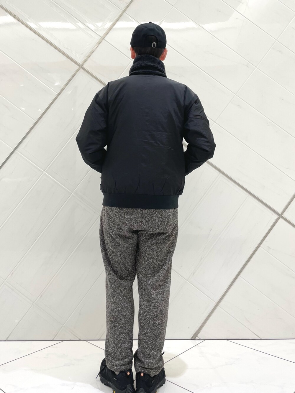 スッキリ見えするフライトジャケットタイプのデザインになっており、膨らむダウンジャケットが苦手な方でも着用して頂きやすいと思います。裏返すと、大きめなブロックステッチのデザインになり、キレイめなスタイルにも馴染みやすいです。