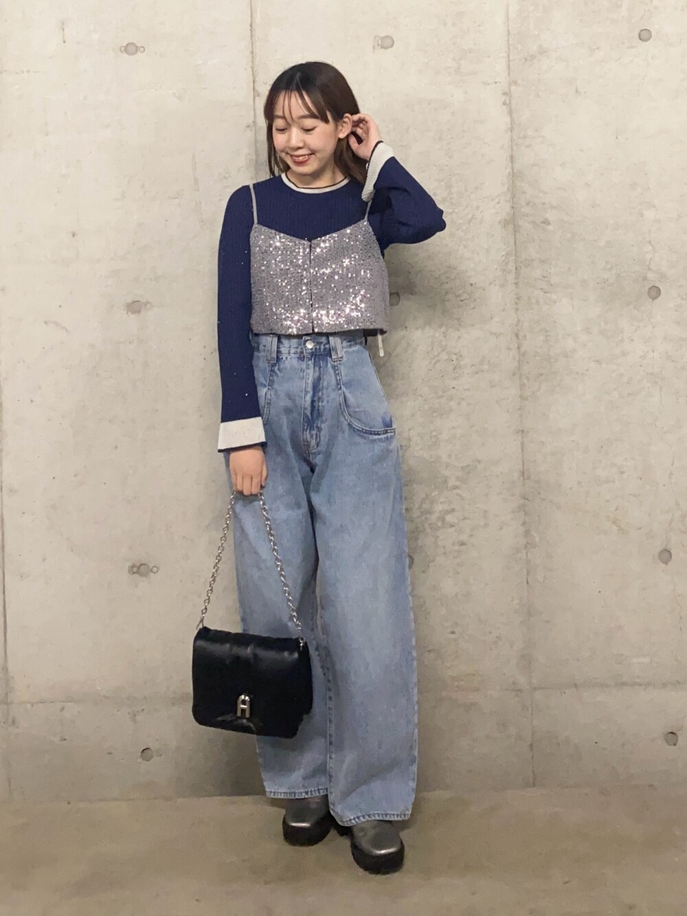 トップスは1枚でも可愛いですし、スパンコールと袖と襟元のバイカラーデザインがレイヤードスタイルにも🙆♀️✨️