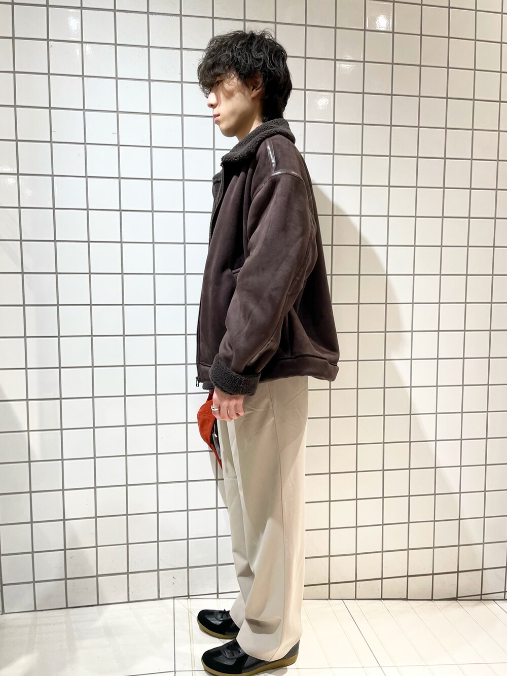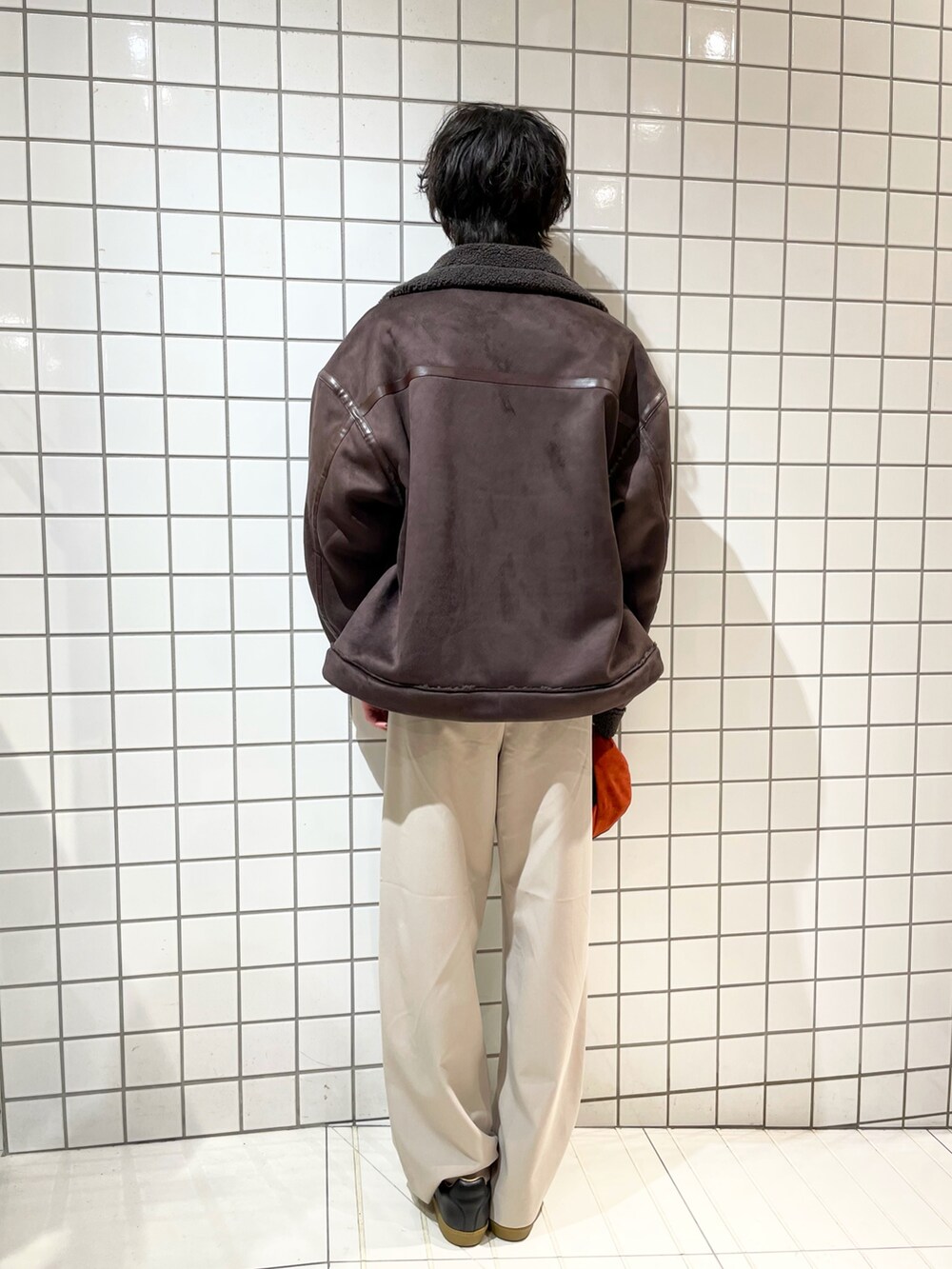 フェイクムートンブルゾンを使ったブラウンコーデになります。