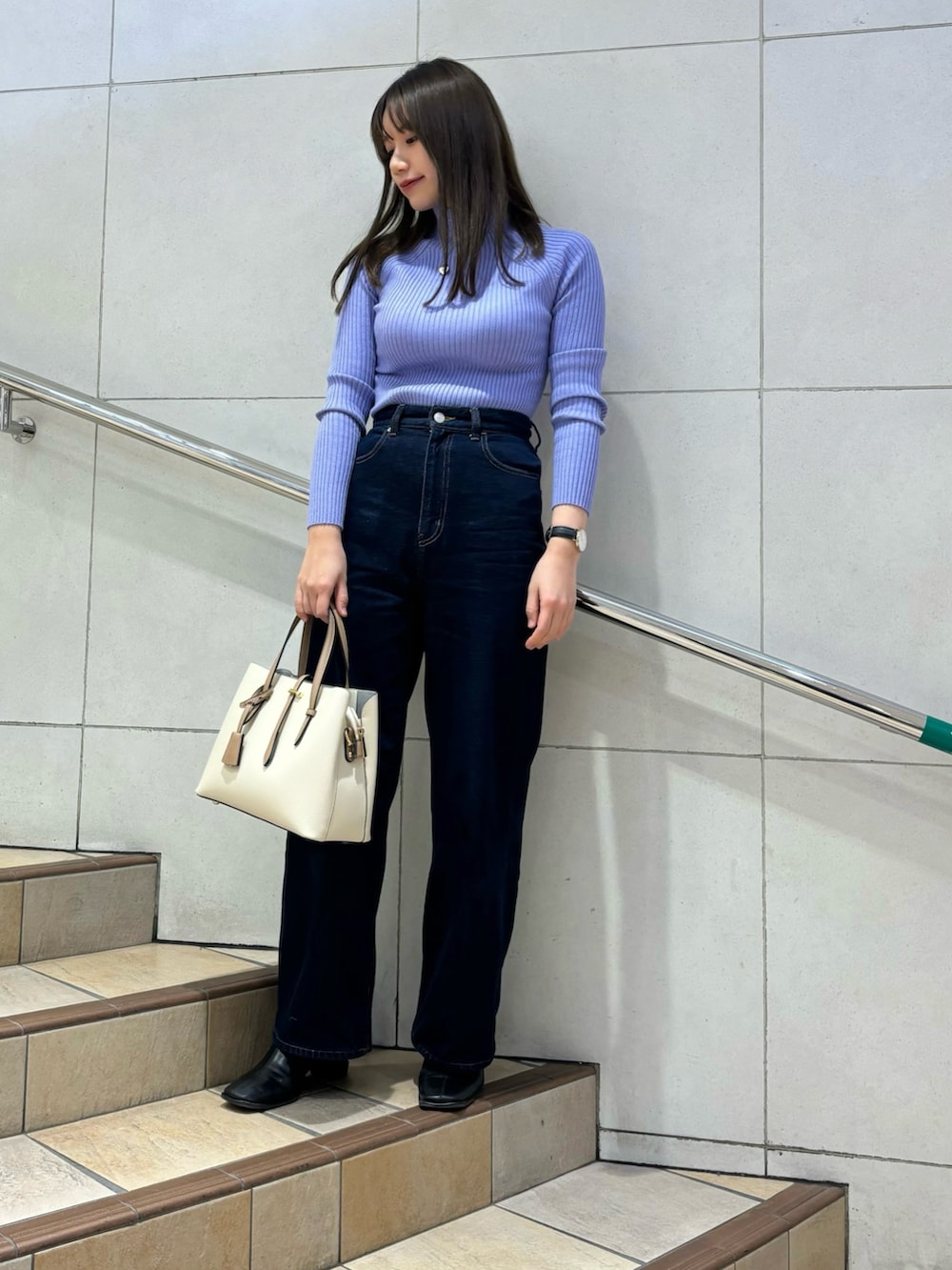 ゆるっとアウターとワイドデニムで大人カジュアルに