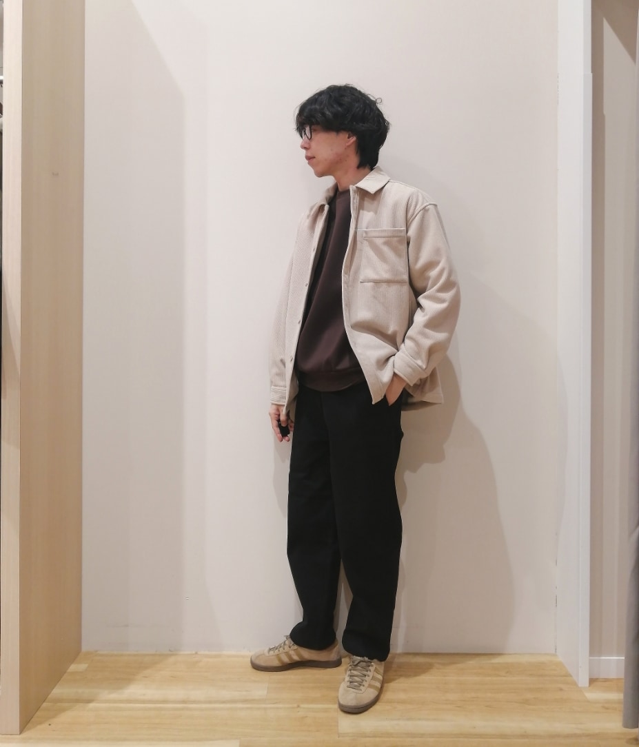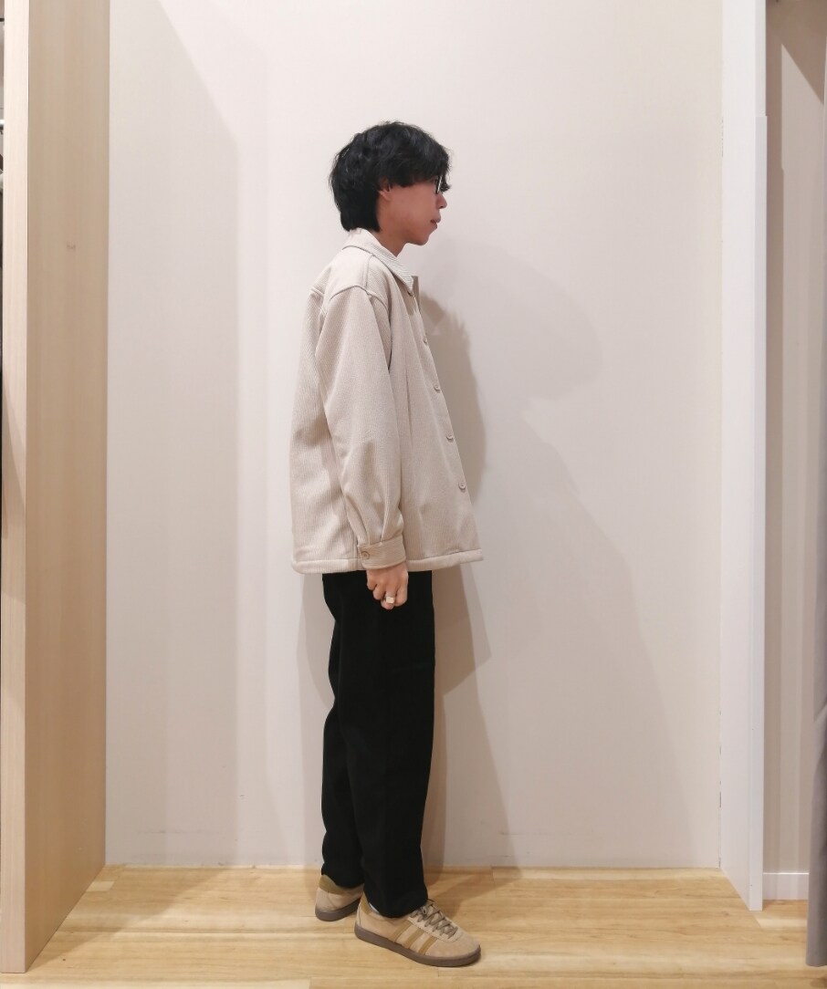 裏地がフリース素材のコーデュロイジャケットがメインのコーディネートになります。