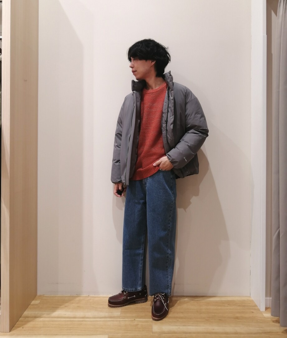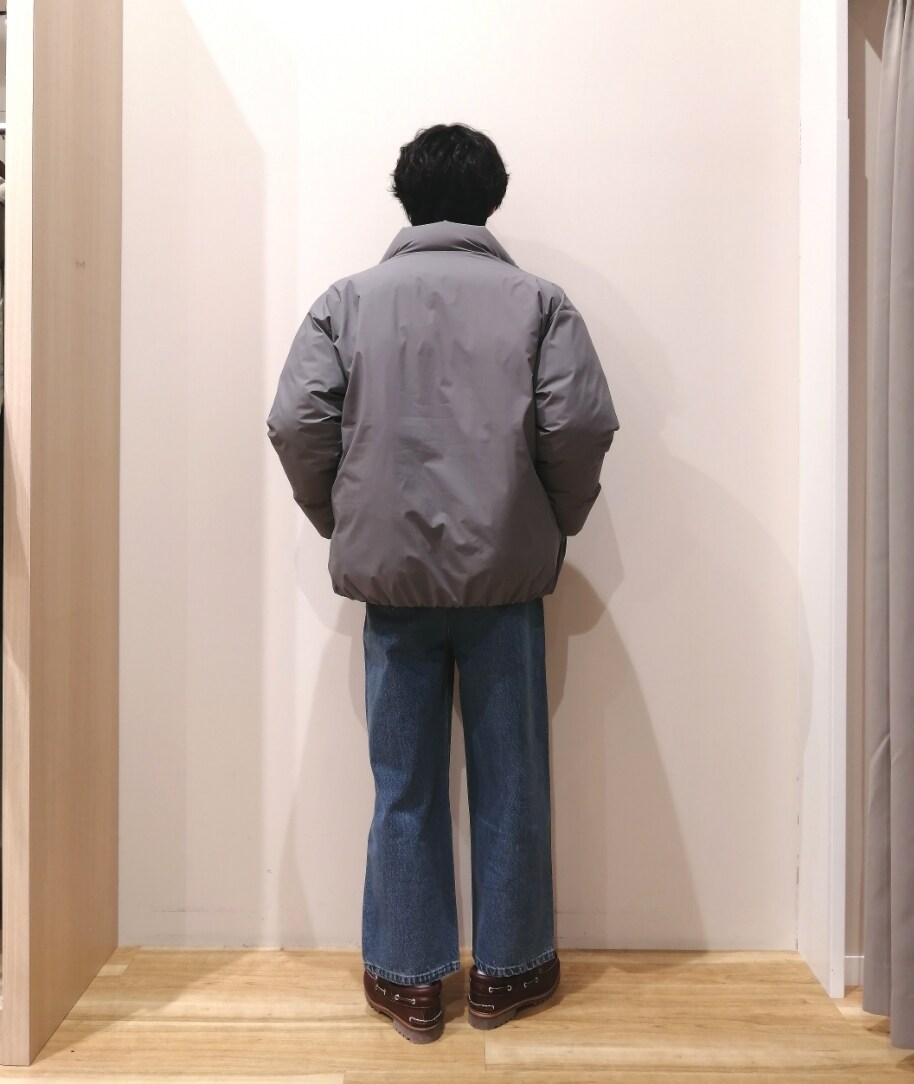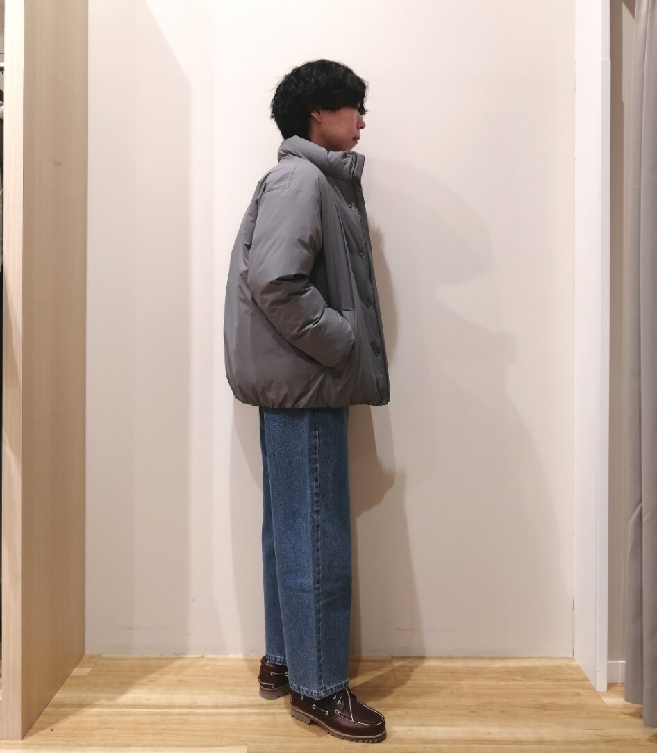 中綿ジャケット×デニムのカジュアルスタイルになります。