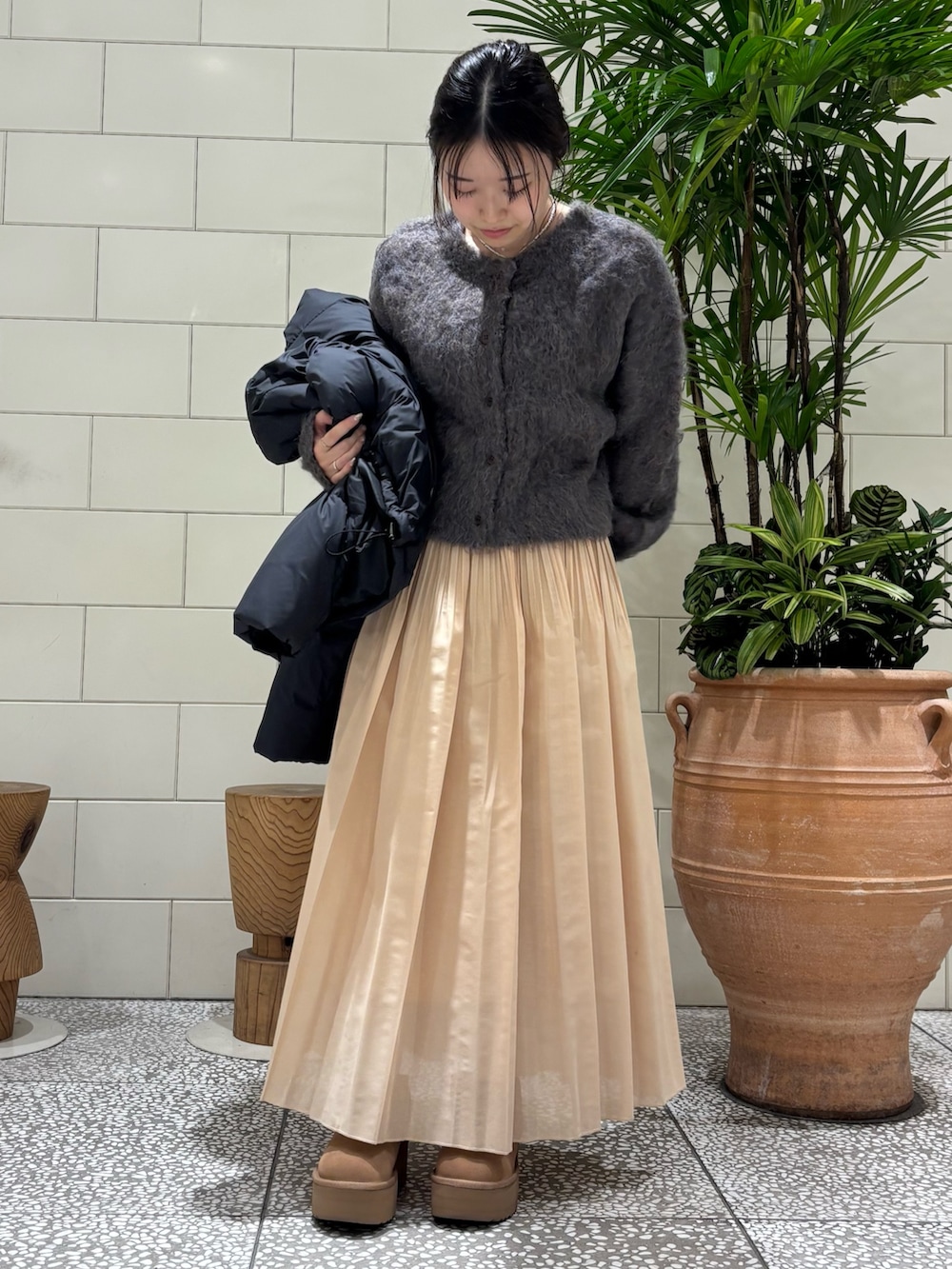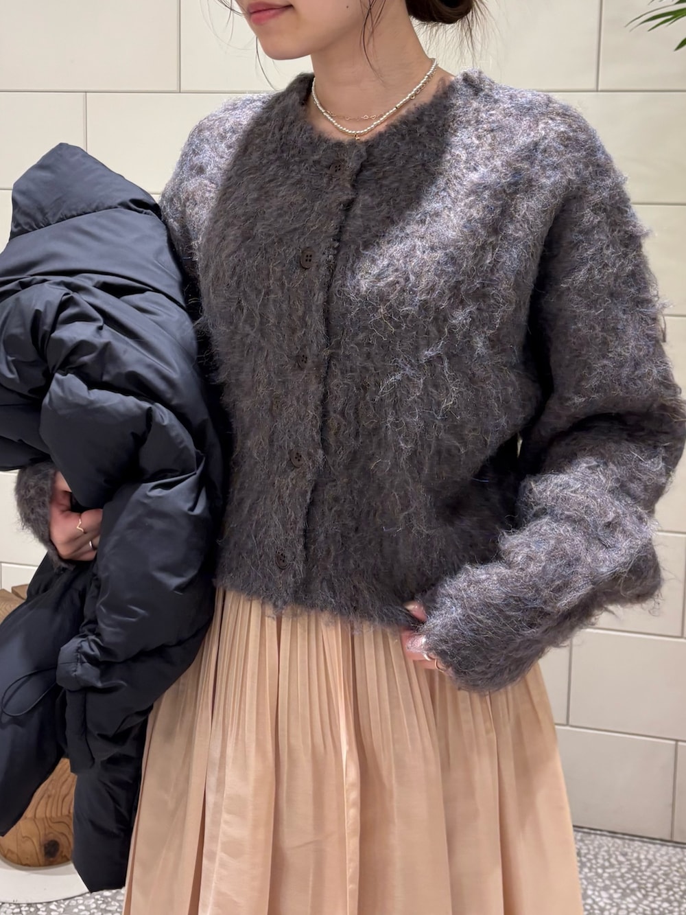 長毛でボリューム感があり季節感満載です。トップスとしてもカーディガンとしても着用頂けます。