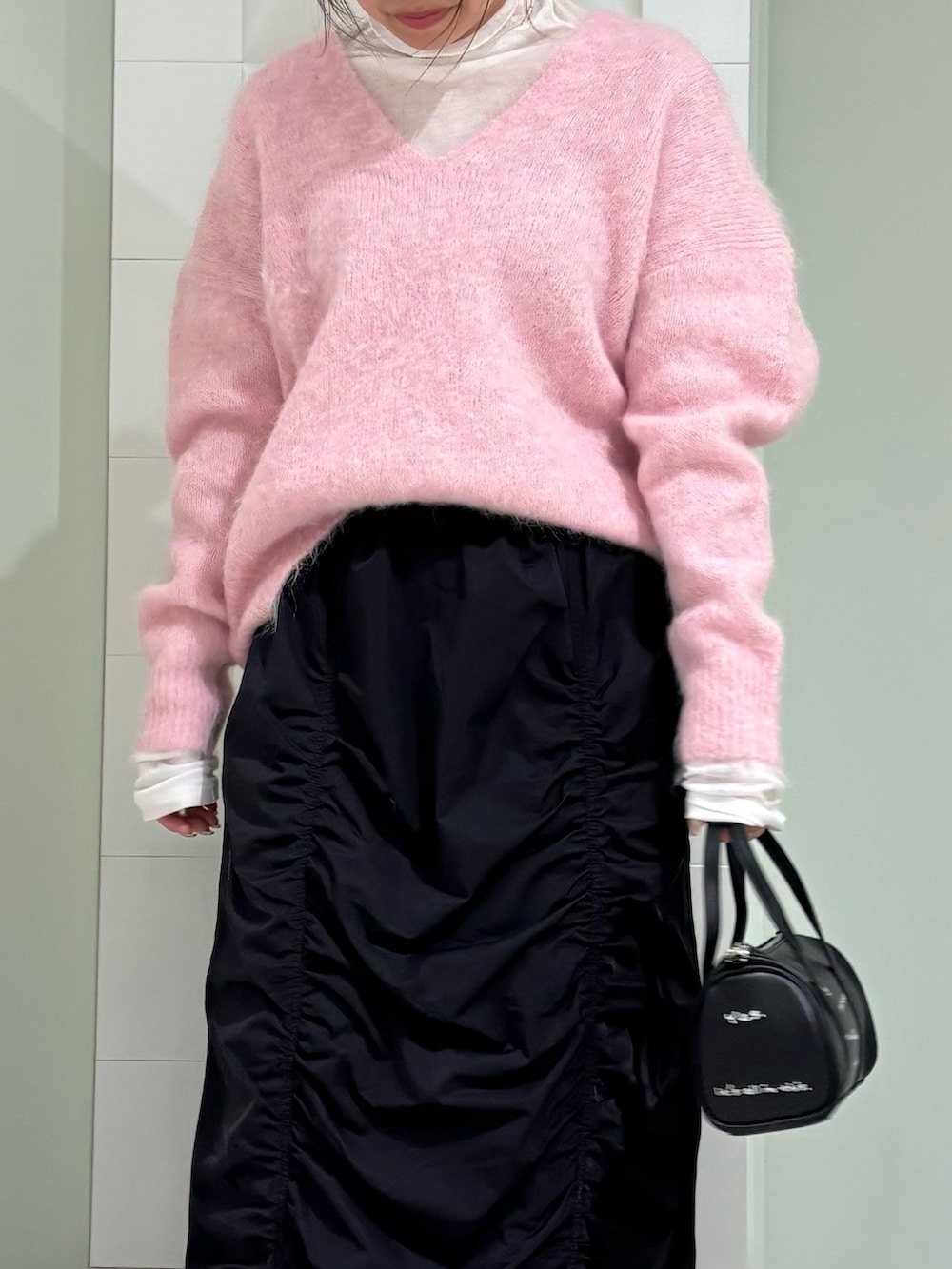 首元が広いのでタートルネックなどと合わせて着用すると◎柔らかさのあるピンクが私の一押しです。