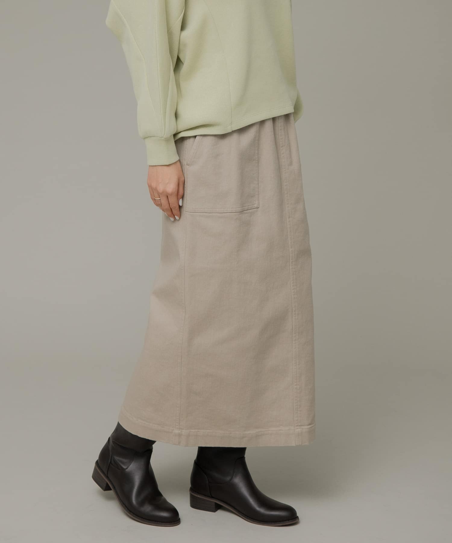 スカートは裏起毛なので、今の季節におすすめのアイテム。