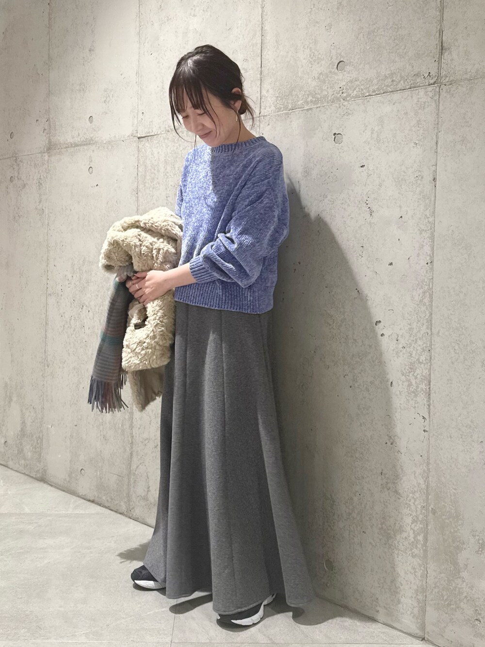 今回は、シルエットのきれいなフレアスカートを合わせて、フェミニンなコーディネートです。